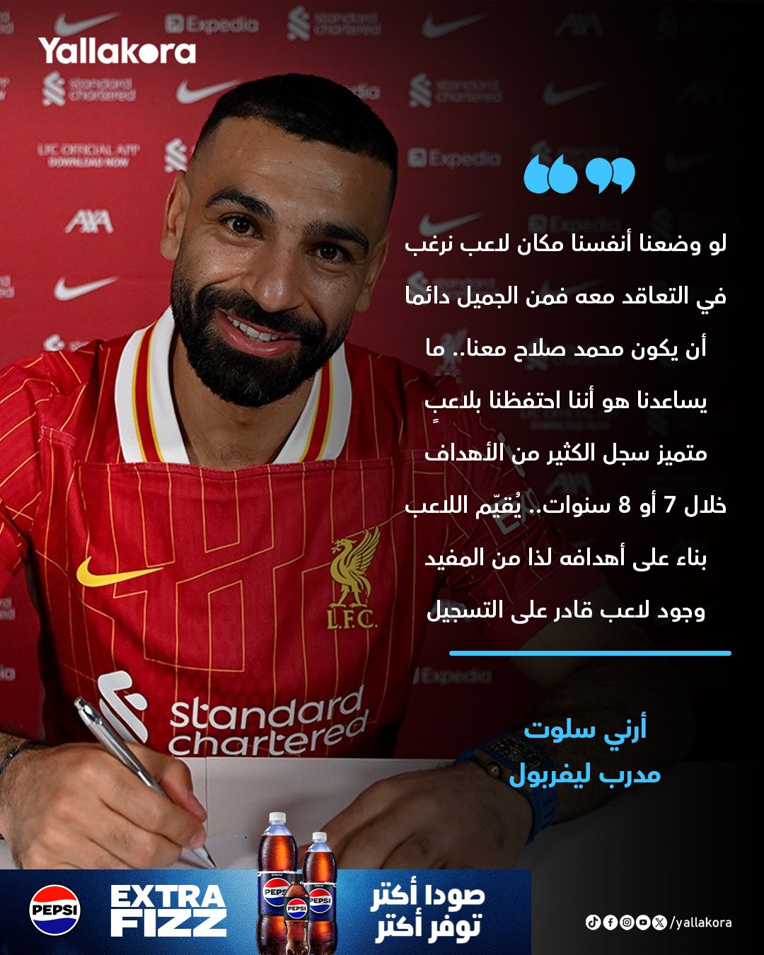 أرني سلوت: لو وضعنا أنفسنا مكان لاعب نرغب في التعاقد معه فمن الجميل دائما أن يكون محمد صلاح معنا.. ما يساعدنا هو أننا احتفظنا بلاعبٍ متميز سجل الكثير من الأهداف خلال 7 أو 8 سنوات.. يُقيّم اللاعب بناء على أهدافه لذا من المفيد وجود لاعب قادر على التسجيل #يلا_بريميرليج