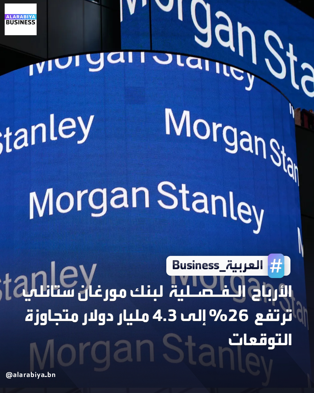 قفزت الأرباح الفصلية لبنك مورغان ستانلي بنسبة 26% إلى 4.3 مليار دولار متجاوزة التوقعات. الإيرادات ارتفعت 17% إلى 17.7 مليار دولار. ربحية السهم 2.6 دولار _Business