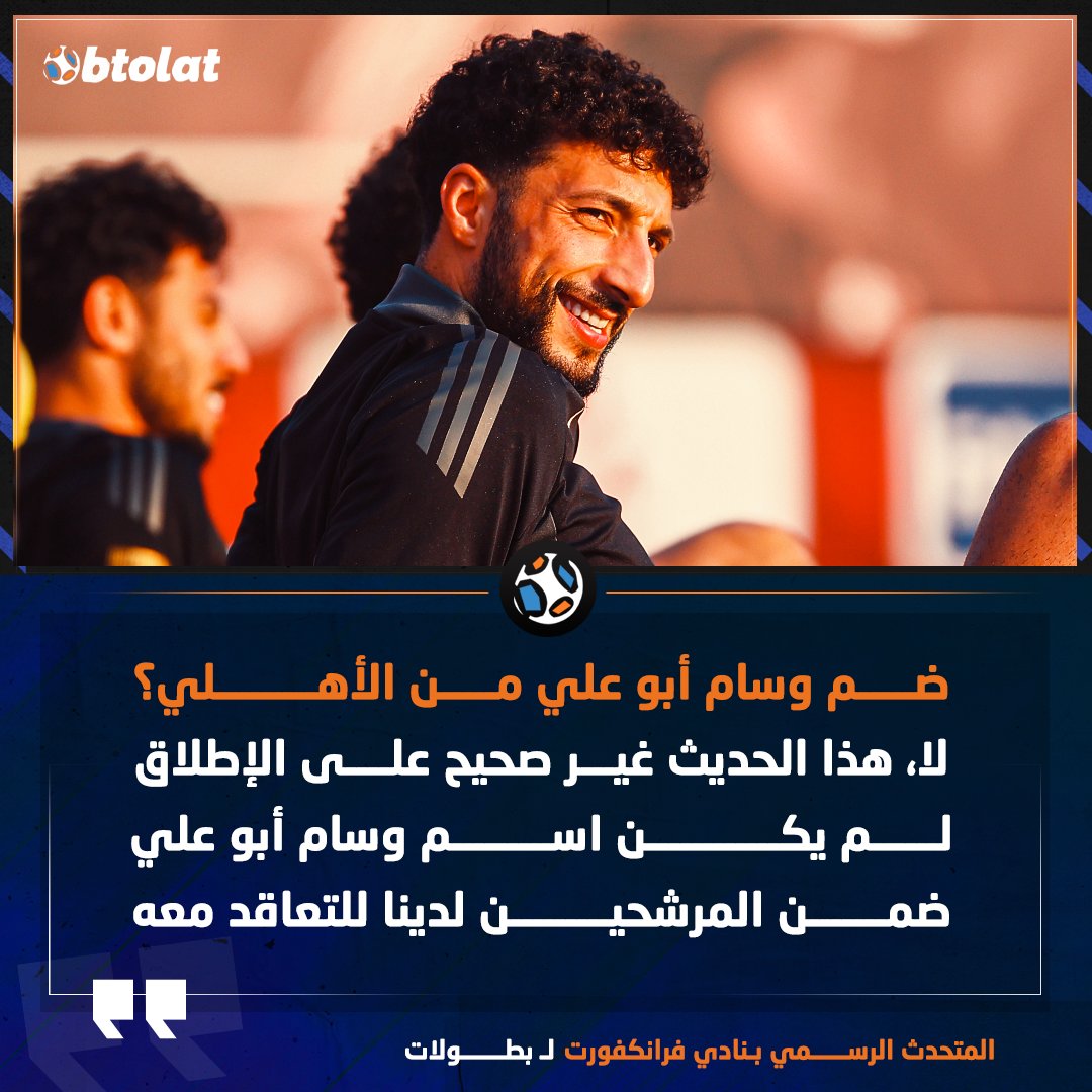 مارتن شتراسيم "المتحدث الرسمي بنادي فرانكفورت" ل "بطولات". ضم وسام أبو علي من الأهلي؟ لم يكن اسم وسام أبو علي ضمن المرشحين لدينا للتعاقد معه