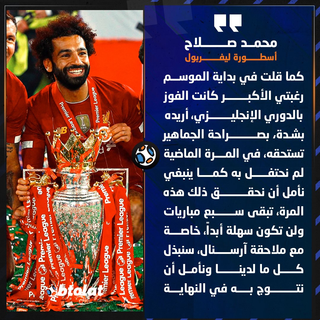 محمد صلاح "عن الفوز بالدوري الإنجليزي": أريده بشدة، بصراحة الجماهير تستحقه، في المرة الماضية لم نحتفل به كما ينبغي ونأمل أن نحقق ذلك هذه المرة