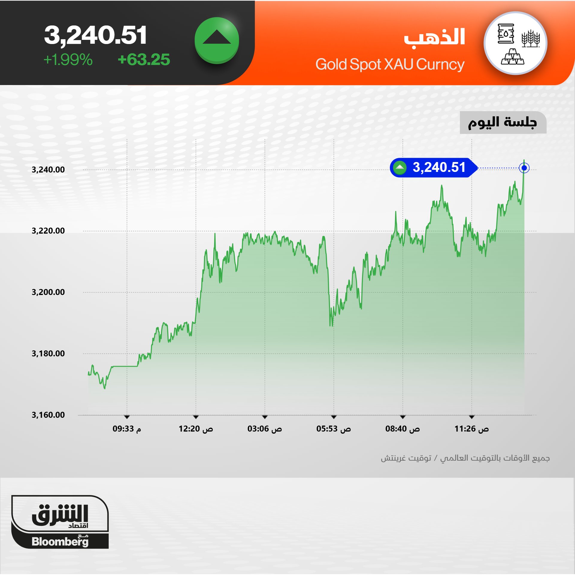 الذهب يرتفع في المعاملات الفورية خلال تعاملات اليوم الجمعة بنحو 2% أو أكثر من 63 دولارا ليتجاوز 3240 دولارا للأونصة لأول مرة #عاجل