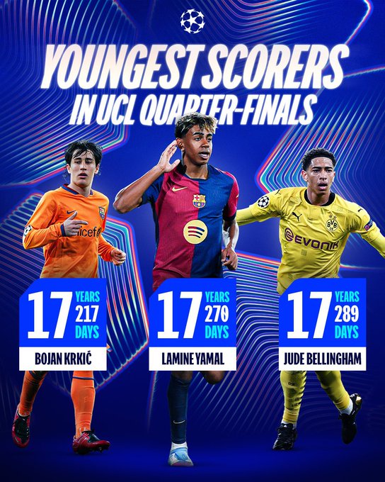 لامين يامال أصبح ثاني أصغر لاعب يسجل في ربع نهائي دوري أبطال أوروبا