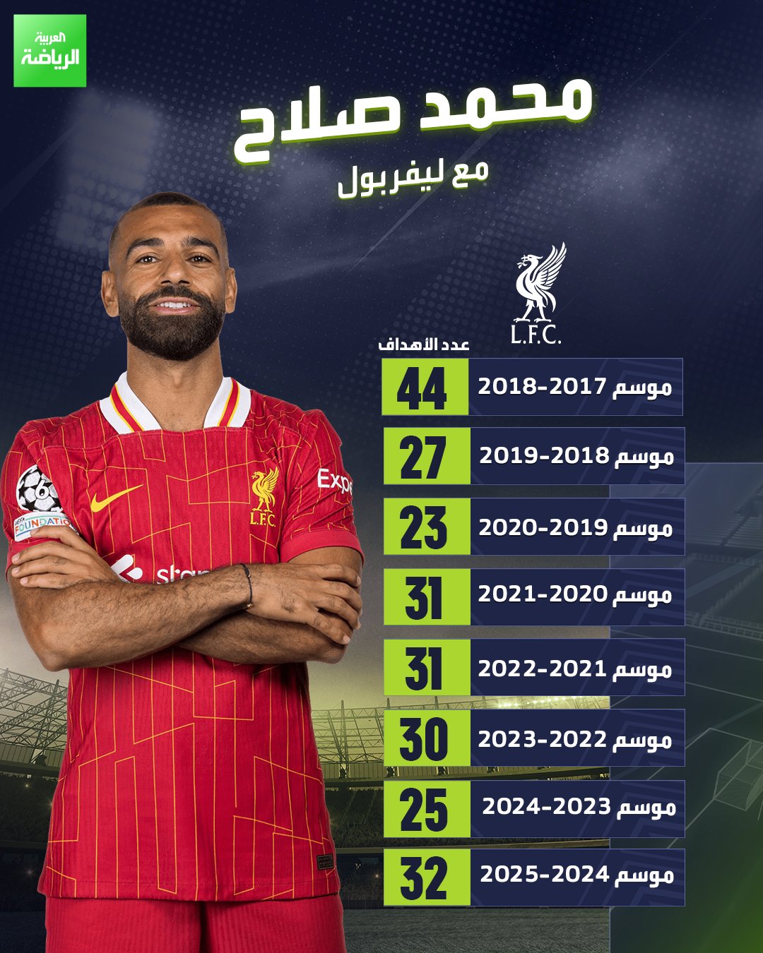 موسم 2017-2018 كان استثنائياً. أهداف محمد صلاح مع ليفربول منذ انضمامه للفريق بحسب الموسم _رياضة