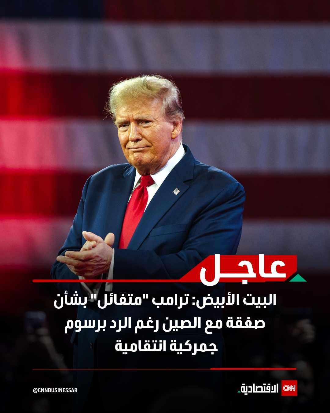 عاجل البيت الأبيض: ترامب "متفائل" بشأن صفقة مع الصين رغم الرد برسوم جمركية انتقامية #العالم_بلغة_الأعمال