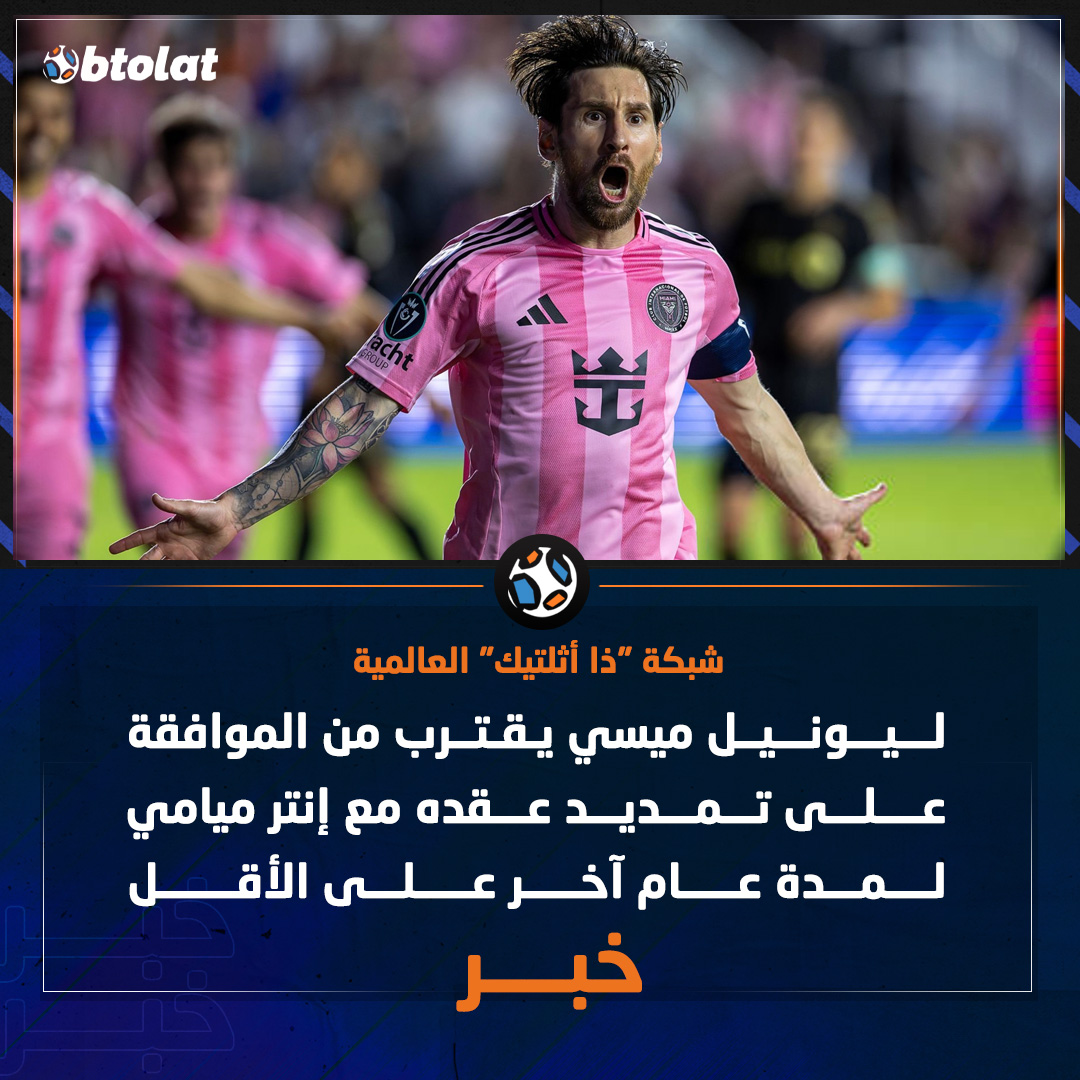 منافس الأهلي في كأس العالم للأندية. شبكة "ذا أثلتيك" العالمية. ليونيل ميسي يقترب من الموافقة على تمديد عقده مع إنتر ميامي لمدة عام آخر على الأقل