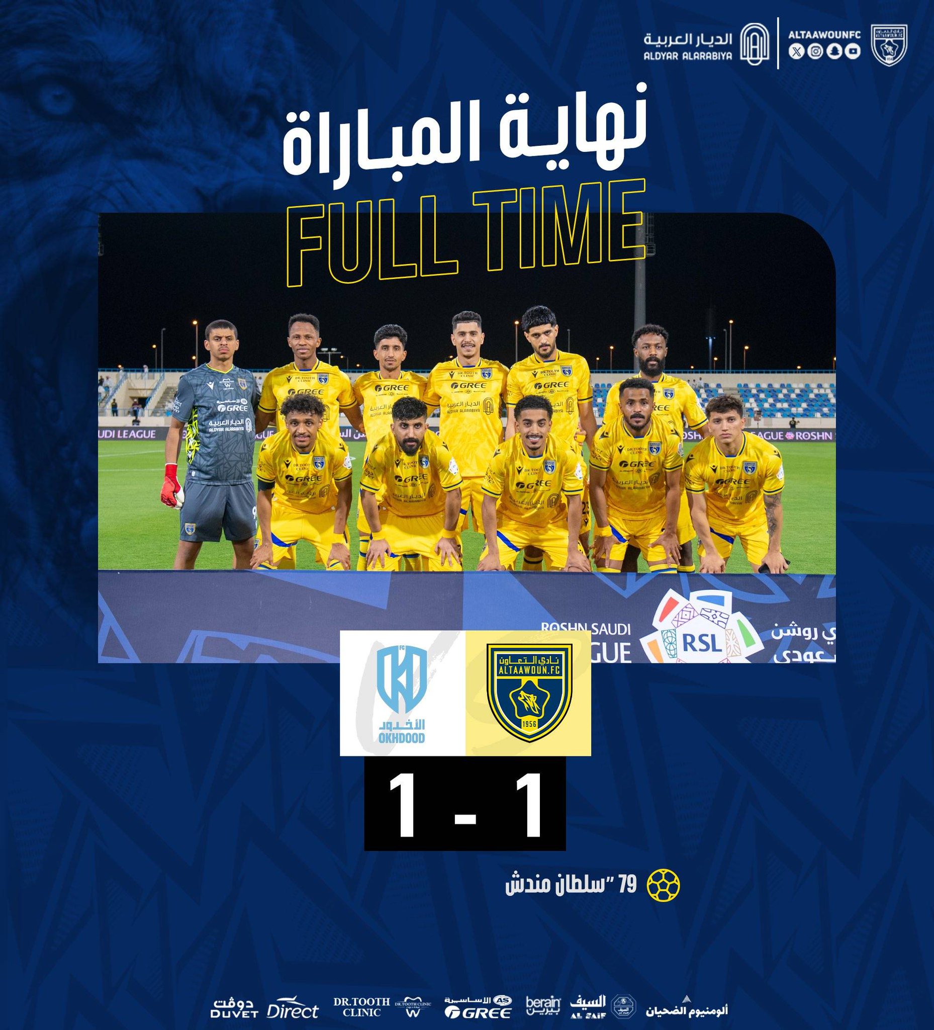 التعادل الإيجابي بعدف لكل فريق يحسم نتيجة مباراة التعاون و الأخدود في #دوري_روشن_السعودي