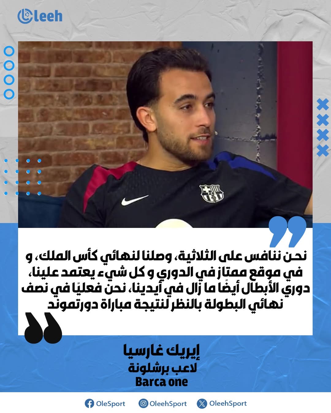 إيريك غارسيا: "نحن ننافس على الثلاثية وكل شيء يعتمد علينا، نتواجد فعليًا في نصف نهائي دوري الأبطال بالنظر لنتيجة مباراة دورتموند"