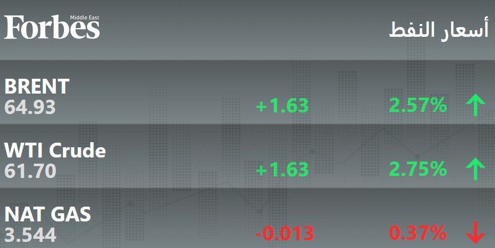 النفط ينهي الجلسة مرتفعًا 2.3% مدفوعًا بتصريحات متفائلة للبيت الأبيض بشأن التوصل إلى اتفاق تجاري مع الصين.. تسوية عقود برنت عند 64.76 دولار للبرميل، وعقود الخام الأميركي عند 61.60 دولار للبرميل
