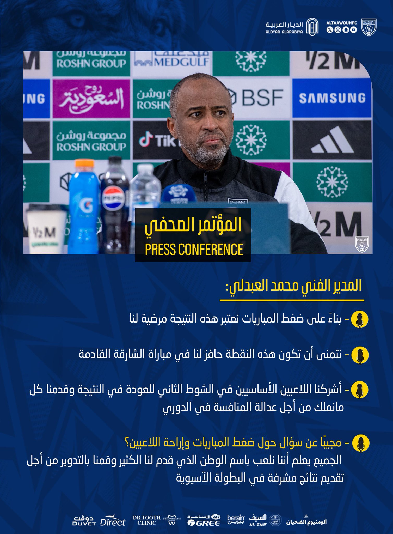أبرز ماجاء في المؤتمر الصحفي للمدير الفني الوطني "محمد العبدلي" مدرب التعاون بعد مباراة #التعاون_الأخدود