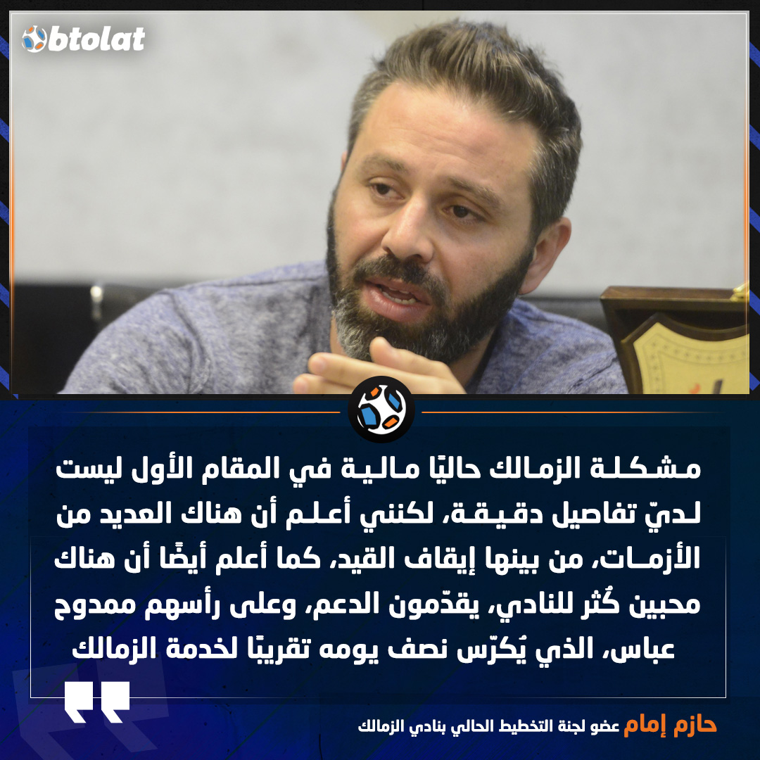 مشكلة الزمالك حاليًا مالية في المقام الأول ليست لديّ تفاصيل دقيقة، لكنني أعلم أن هناك العديد من الأزمات، من بينها إيقاف القيد، كما أعلم أيضًا أن هناك محبين كُثر للنادي، يقدّمون الدعم، وعلى رأسهم ممدوح عباس، الذي يُكرّس نصف يومه تقريبًا لخدمة الزمالك