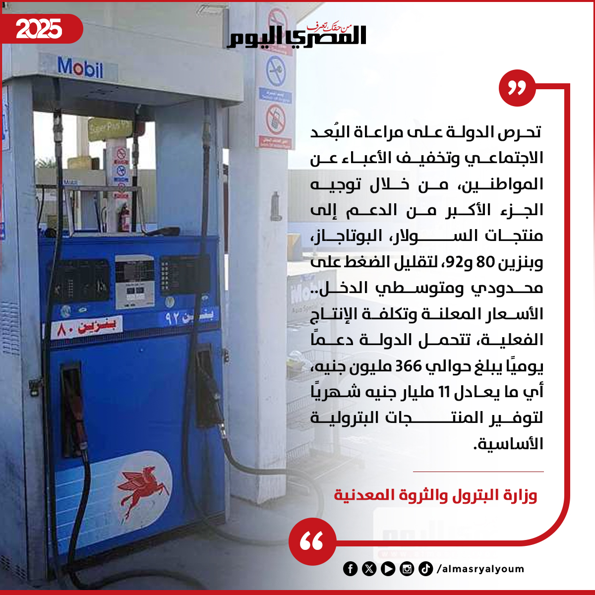 وزارة البترول: تحرص الدولة على مراعاة البُعد الاجتماعي وتخفيف الأعباء عن المواطنين
