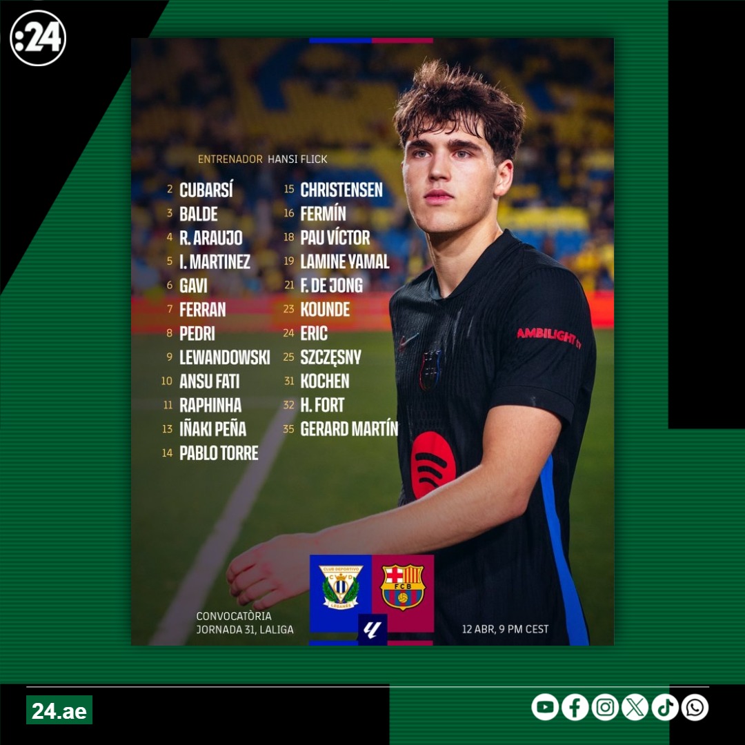 قائمة برشلونة لمواجهة ليغانيس في الجولة 31 من الدوري الإسباني. أنسو فاتي. تير شتيغن، بيرنال، كاسادو، أولمو