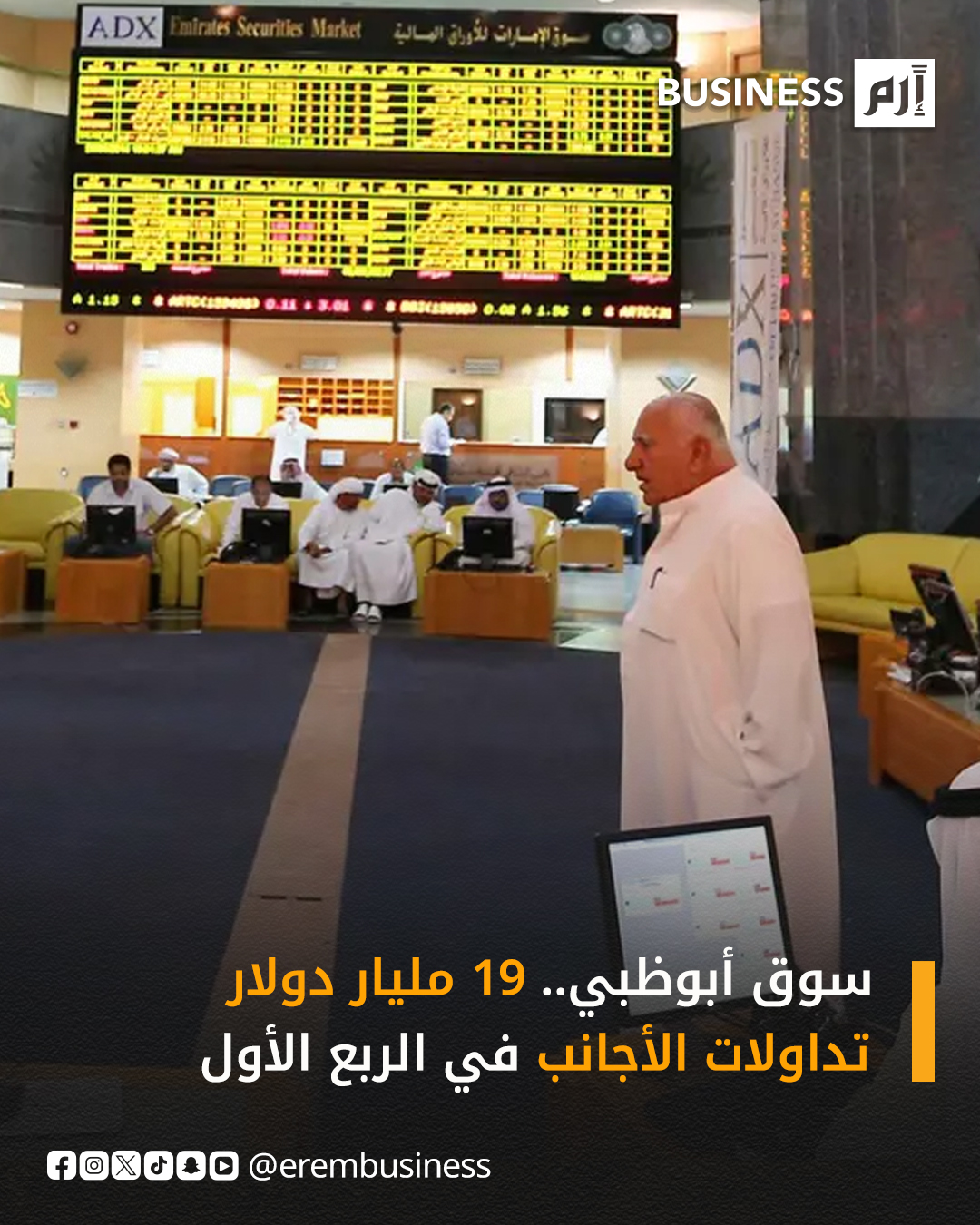 قفزت قيمة تداولات المستثمرين الأجانب خلال الربع الأول من العام الحالي 62.2% إلى نحو 69.79 مليار درهم «19 مليار دولار»، مدفوعة بارتفاع ملحوظ في مؤشرات السيولة والنشاط الاستثماري، لاسيما من قبل المستثمرين الأجانب والمؤسساتيين.