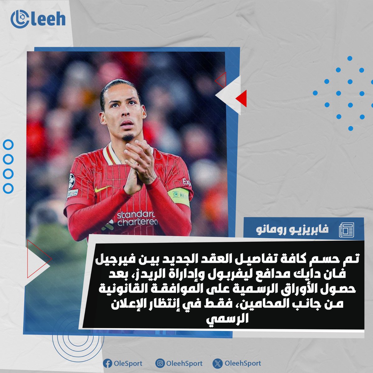 تم الإتفاق الكامل على عقد المدافع فان دايك الجديد مع ليفربول، بانتظار الإعلان الرسمي فقط