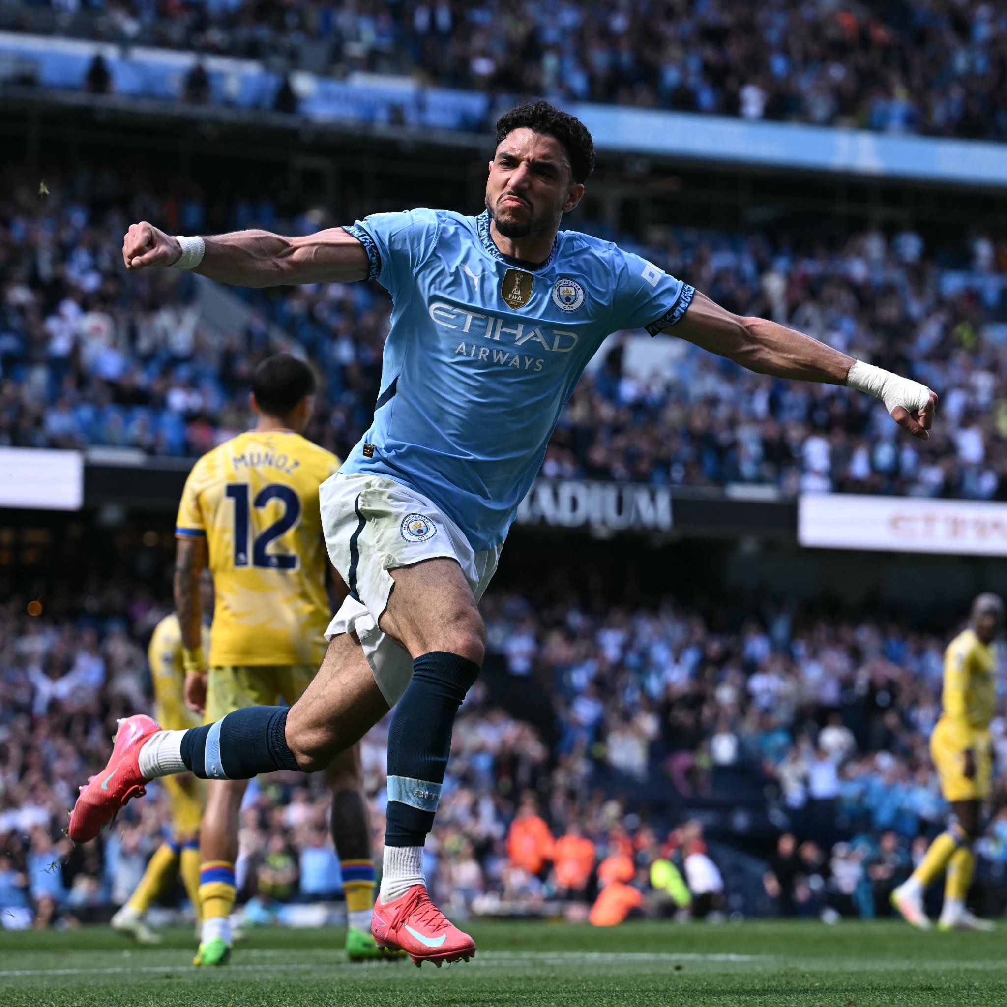 تم إضافة الهدف السابع بنجاح مع مانشستر سيتي. احتفال عمر مرموش بعد هدفه في شباك كريستال بالاس بالبريميرليج