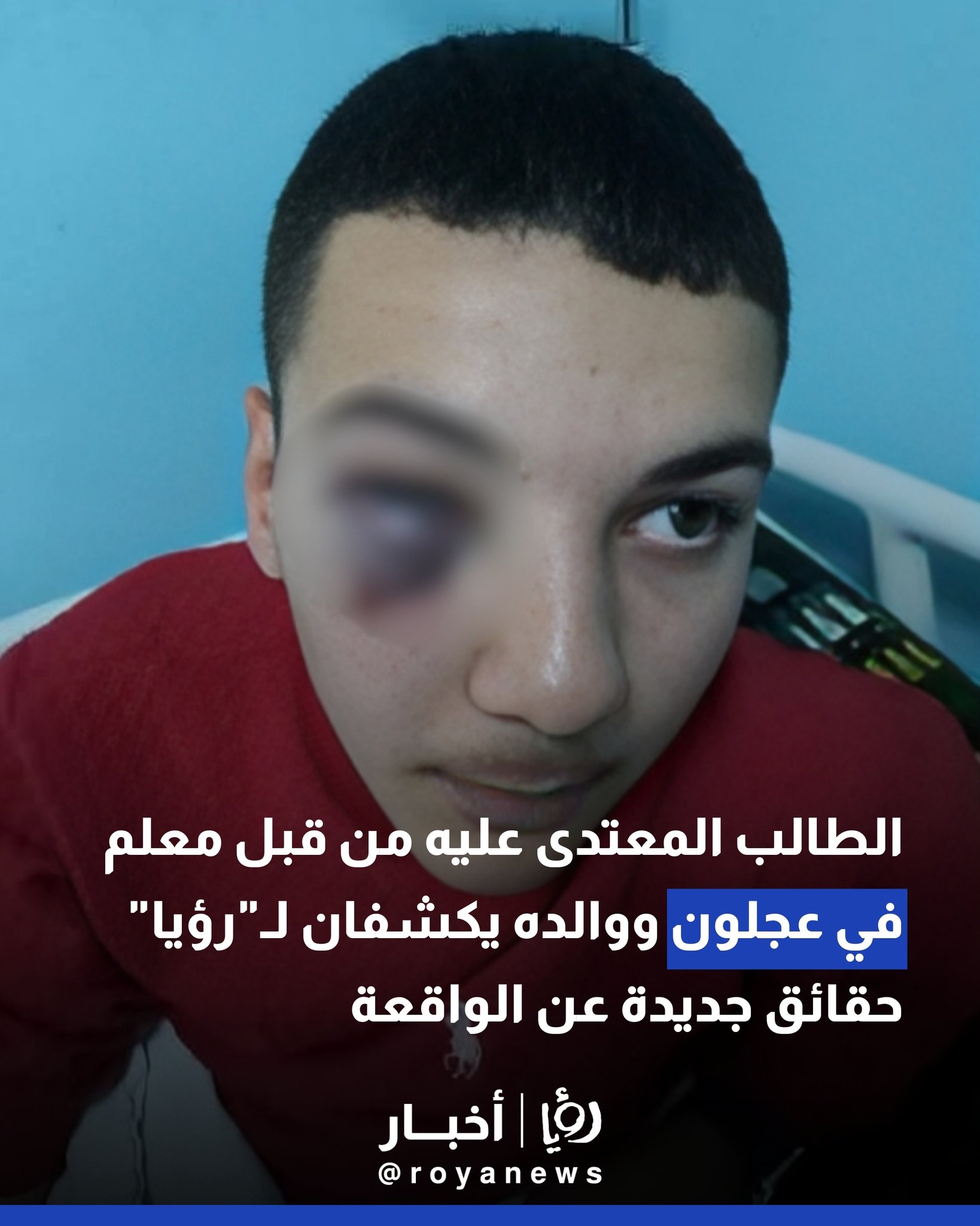 من جهته، أكد والد الطالب في حديثه لـ"رؤيا" أنه تقدّم بشكوى رسمية لدى مدعي عام عجلون بحق المعلم المعتدي، مضيفًا أن إدارة المدرسة أبلغته بالحادثة وبنقل ابنه إلى المستشفى، حيث أكد له الأطباء ضرورة خضوع ابنه لجراحة في العين بسبب.....
