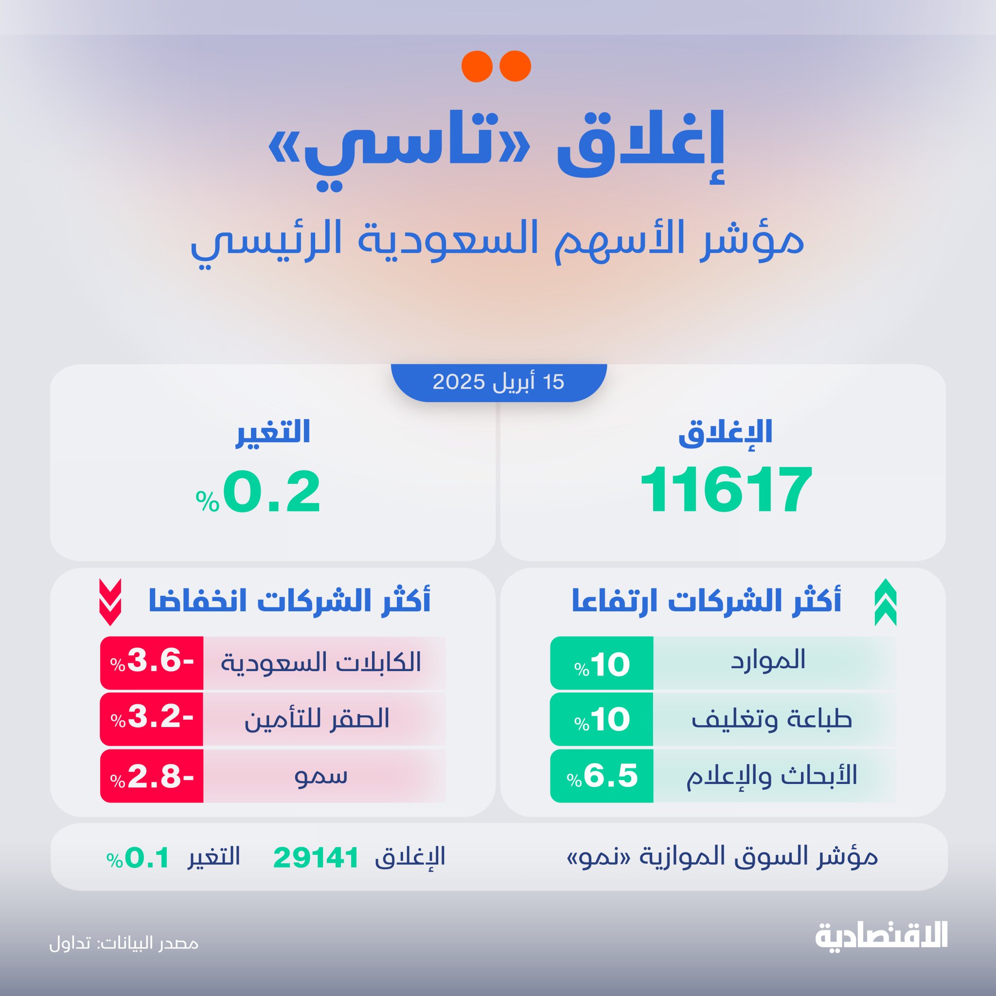 ارتفعت الأسهم السعودية بنهاية تعاملات اليوم الثلاثاء 0.2% لتصل إلى 11617 نقطة بعدما واجهت شركات قيادية على رأسها "إس تي سي" تراجع معظم الأسهم، فيما ارتفعت السوق الموازية نمو بوتيرة أقل بلغت 0.1%