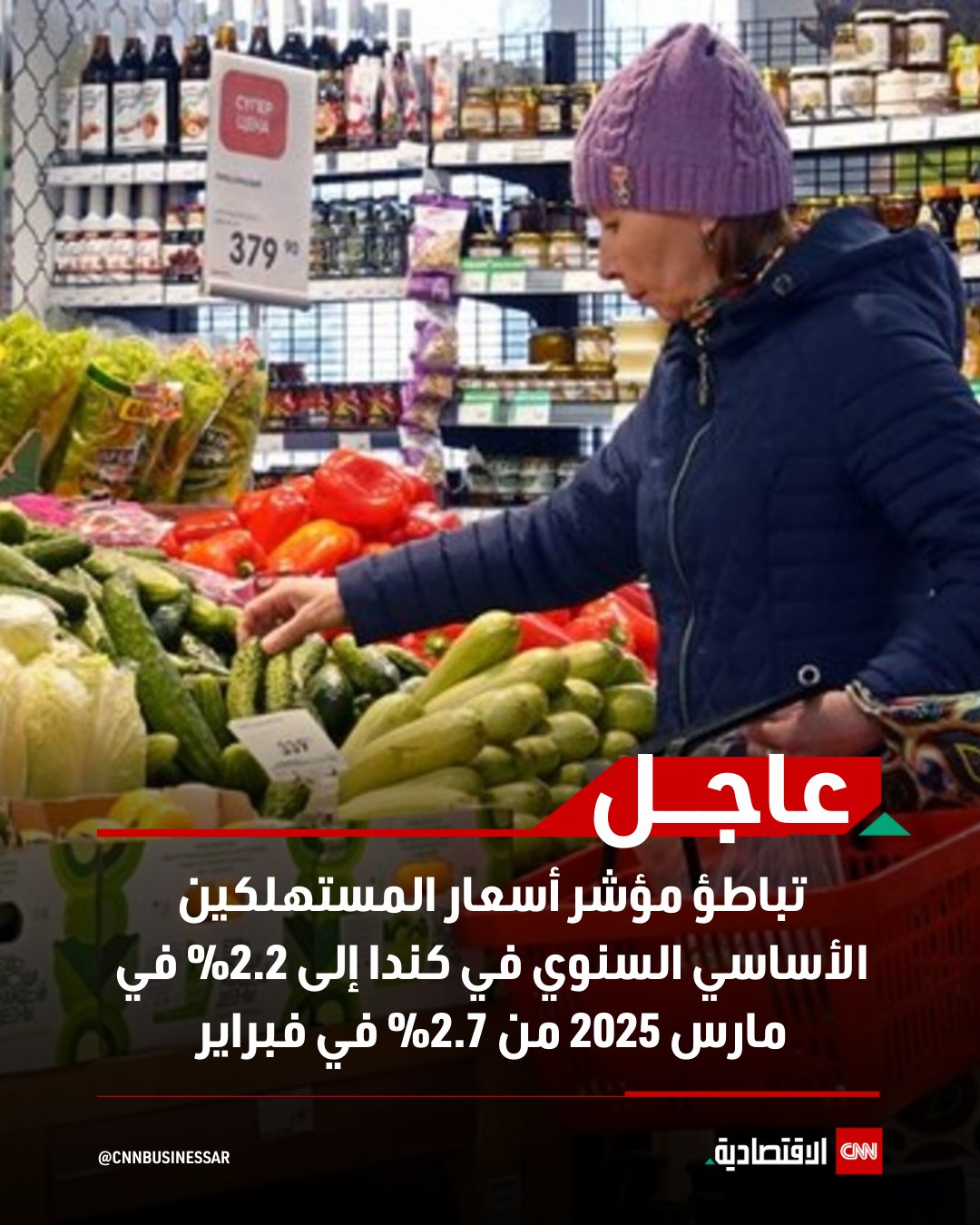 عاجل | تباطؤ مؤشر أسعار المستهلكين الأساسي السنوي في كندا إلى 2.2% في مارس 2025 من 2.7% في فبراير #العالم_بلغة_الأعمال