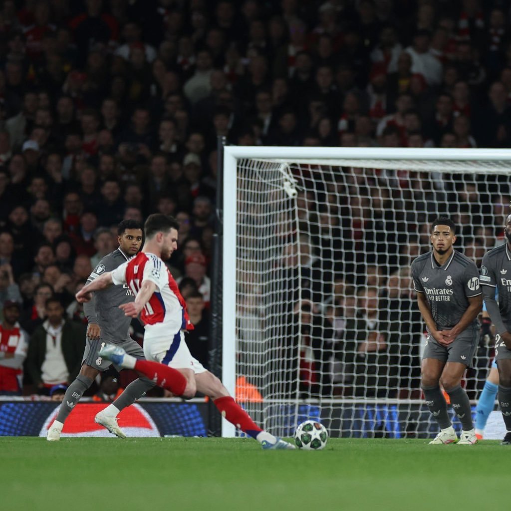 جود بيلينغهام خلال المؤتمر الصحفي: "ركلات ديكلان رايس الحرة كانت مفاجأة، لم أره يفعل ذلك من قبل (يضحك)". "كل الاحترام له، بصراحة "