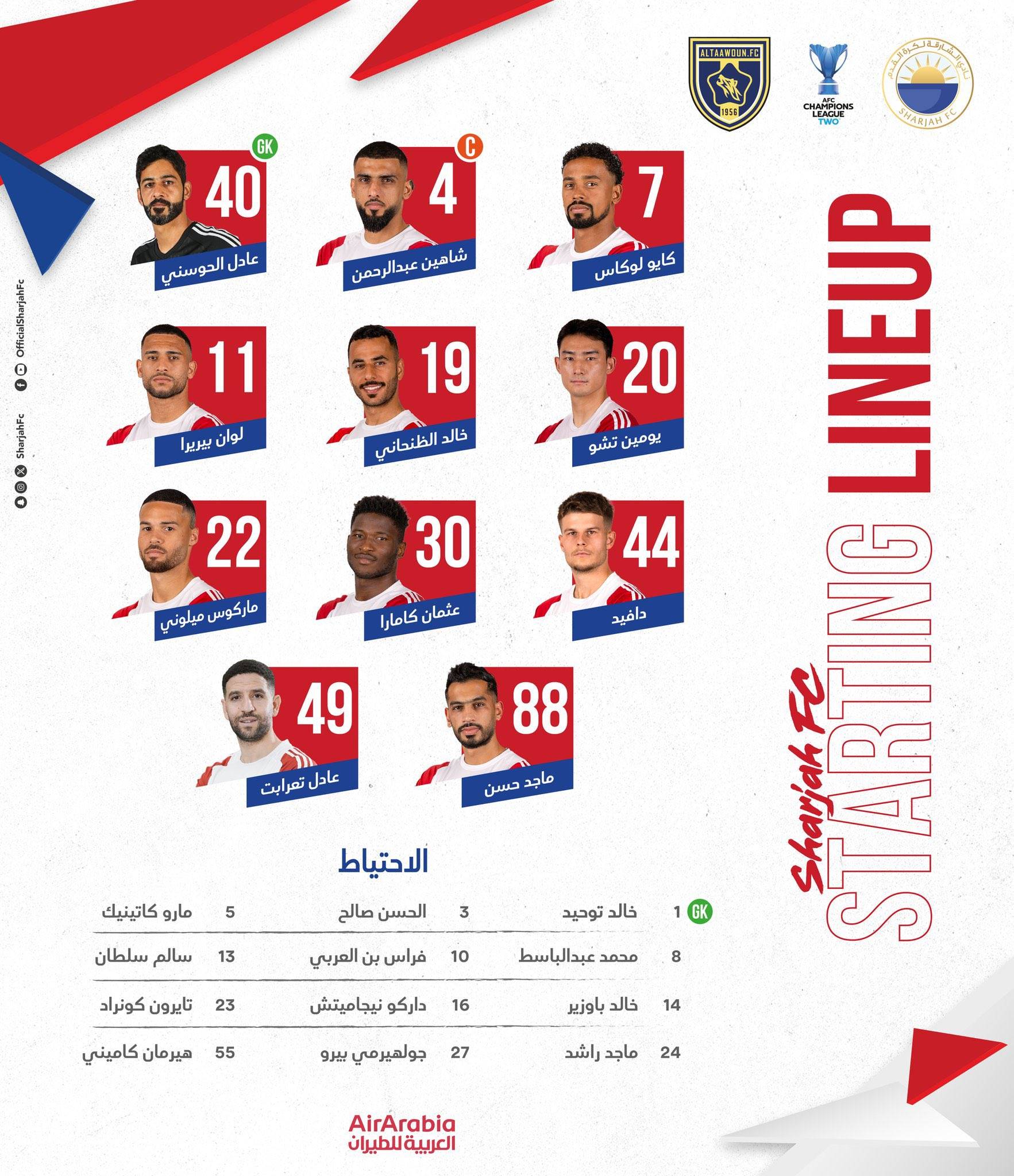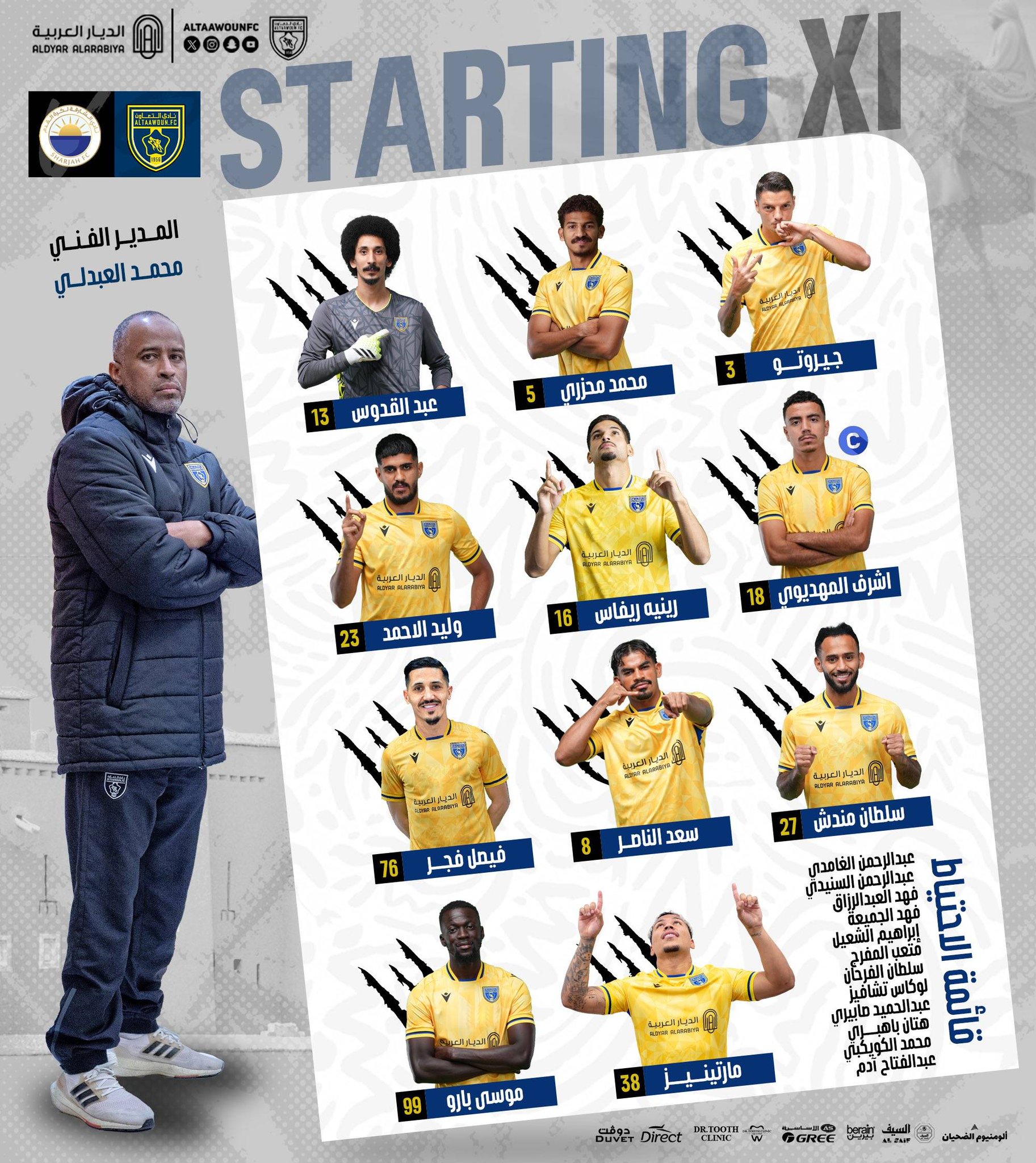 تشكيلة الشارقة الإماراتي و التعاون في إياب نصف نهائي #دوري_أبطال_آسيا2