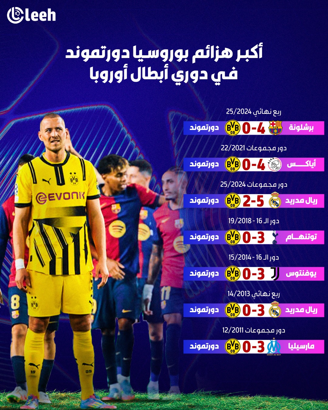 دوري أبطال أوروبا | قبل مواجهة برشلونة الليلة... إليكم أكبر الهزائم التي تلقاها بوروسيا دورتموند في تاريخ مشاركاته بدوري الأبطال