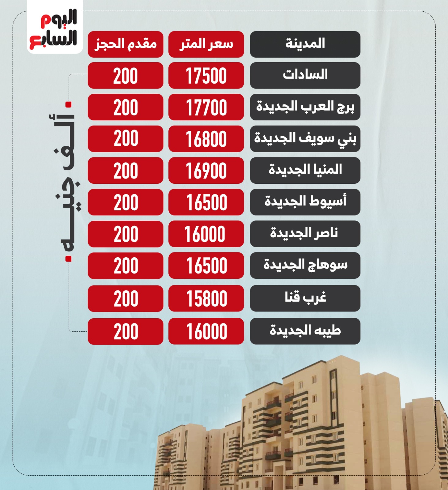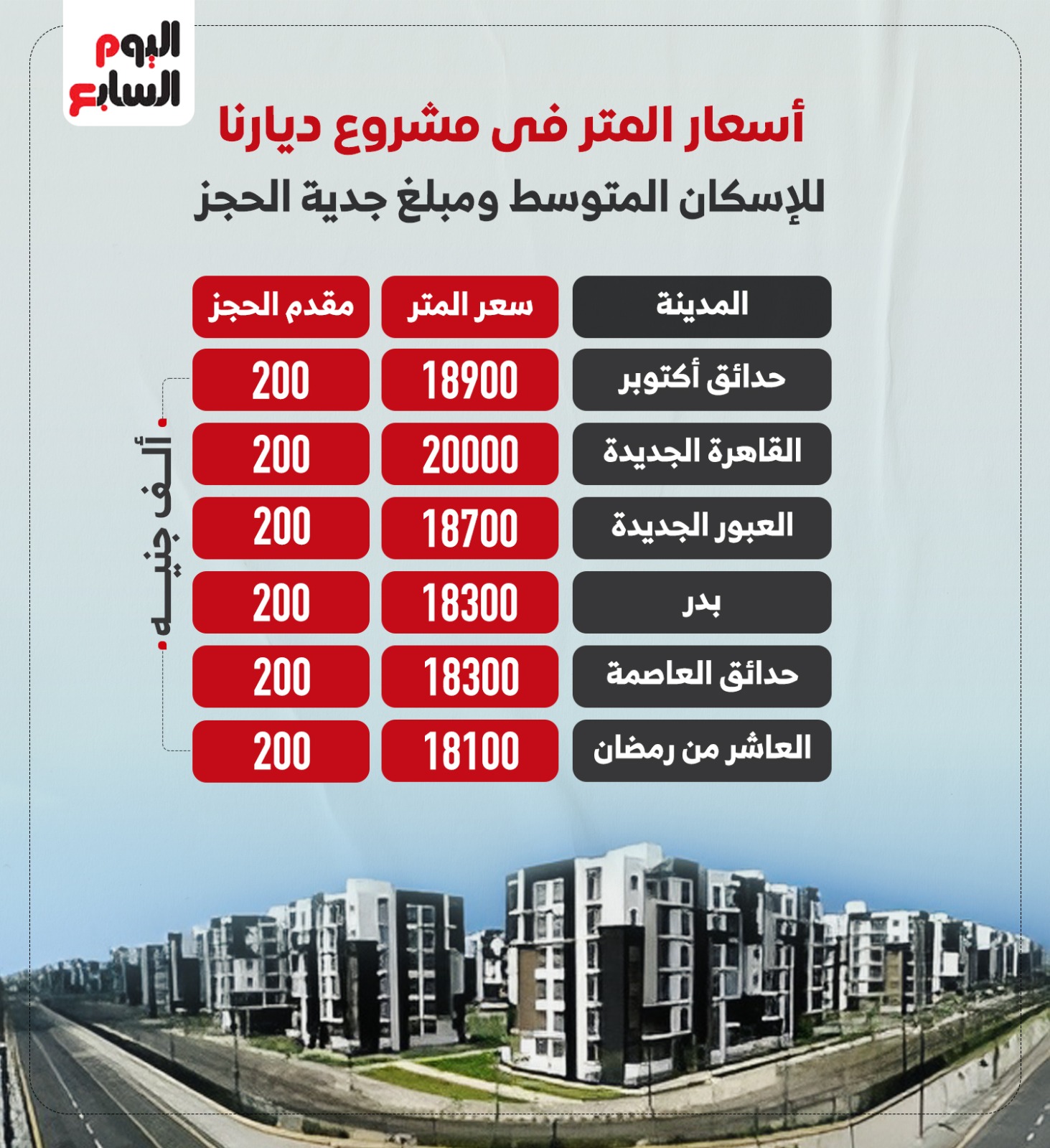أسعار المتر فى مشروع ديارنا للإسكان المتوسط ومبلغ جدية الحجز