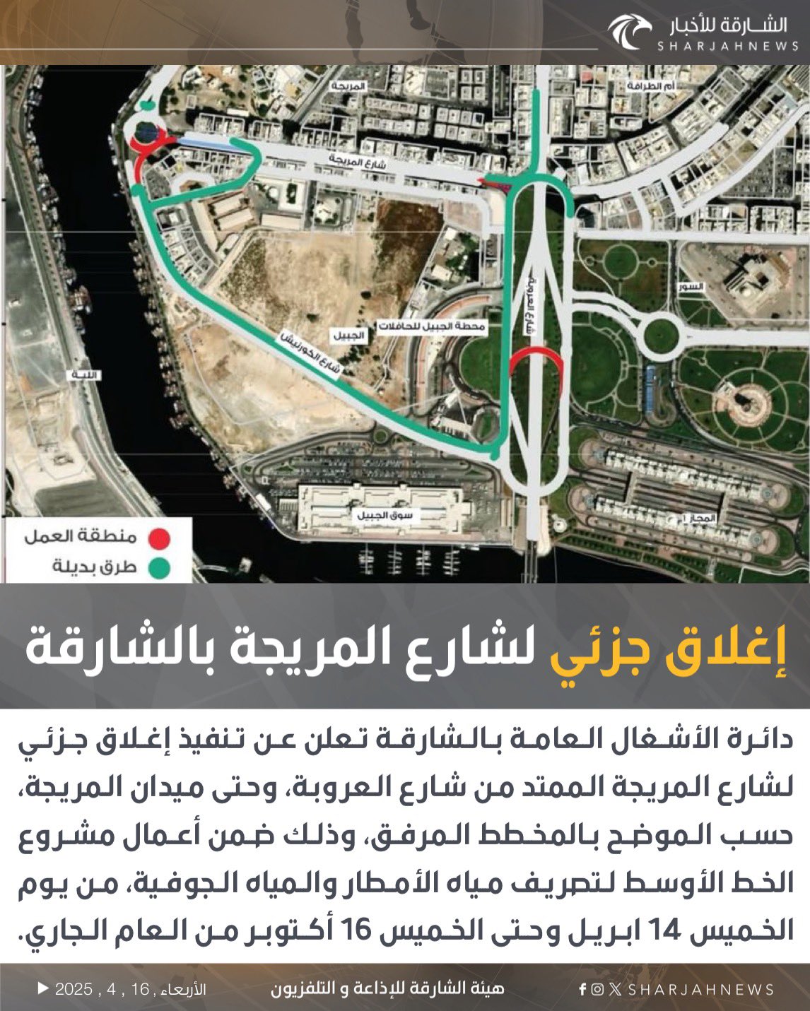 إغلاق جزئي لشارع المريجة بالشارقة.
