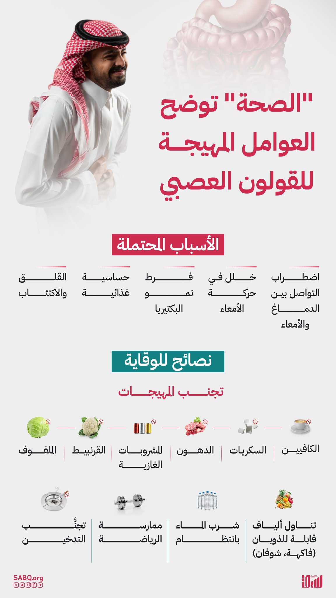 وزارة الصحة توضّح أهم أسباب تهيّج القولون العصبي وتذّكر 5 تغيُّرات في نمط الحياة ونوعية الطعام قد تُخفِّف الأعراض وتحدُّ من التقلصات والانتفاخات