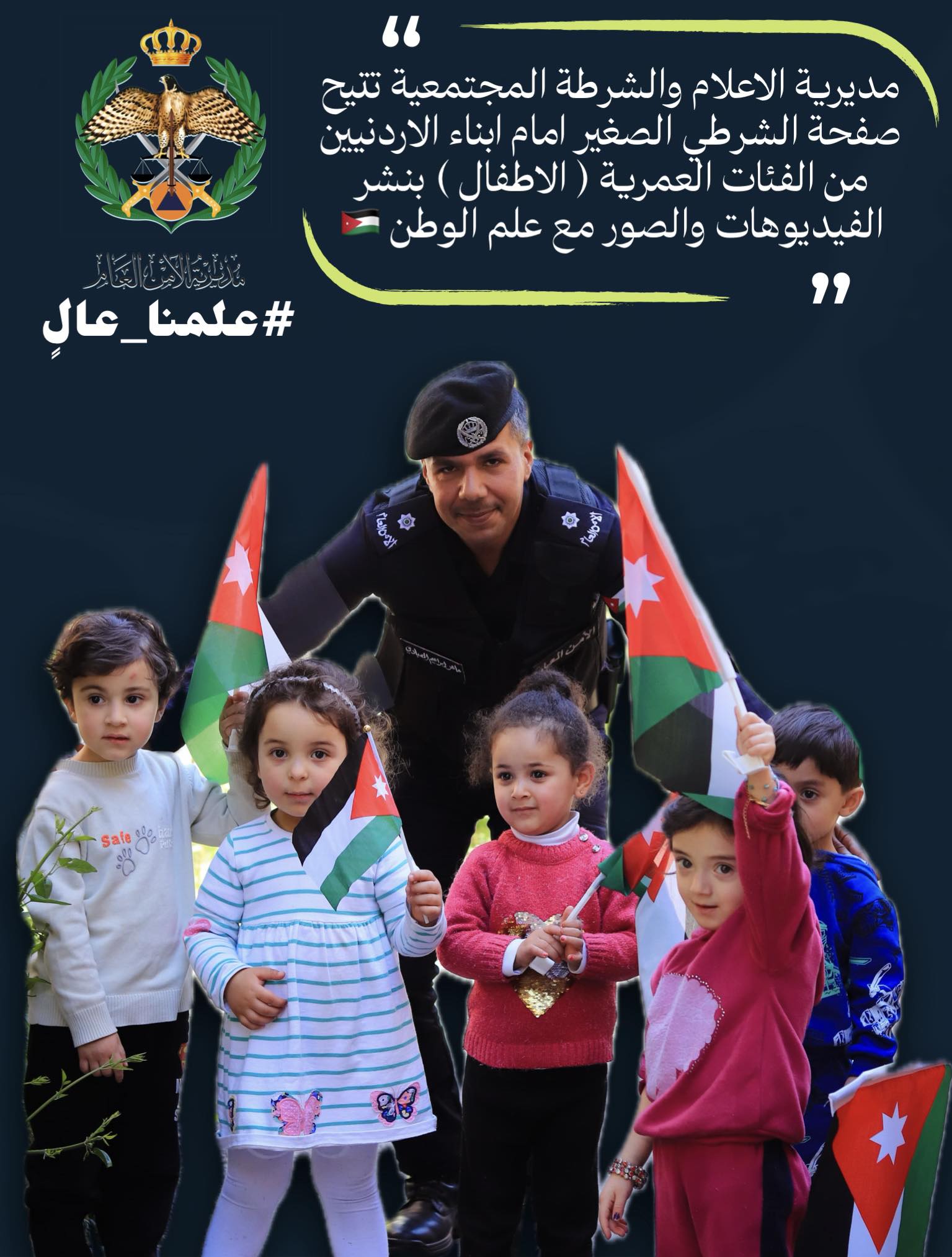 مديرية الاعلام والشرطة المجتمعية تتيح صفحة الشرطي الصغير امام أبناء الاردنيين من الفئات العمرية ( الاطفال ) بنشر الفيديوهات والصور مع علم الوطن. اليوم الوطني للعلم الأردني علمنا عال ٍ #الأردن
