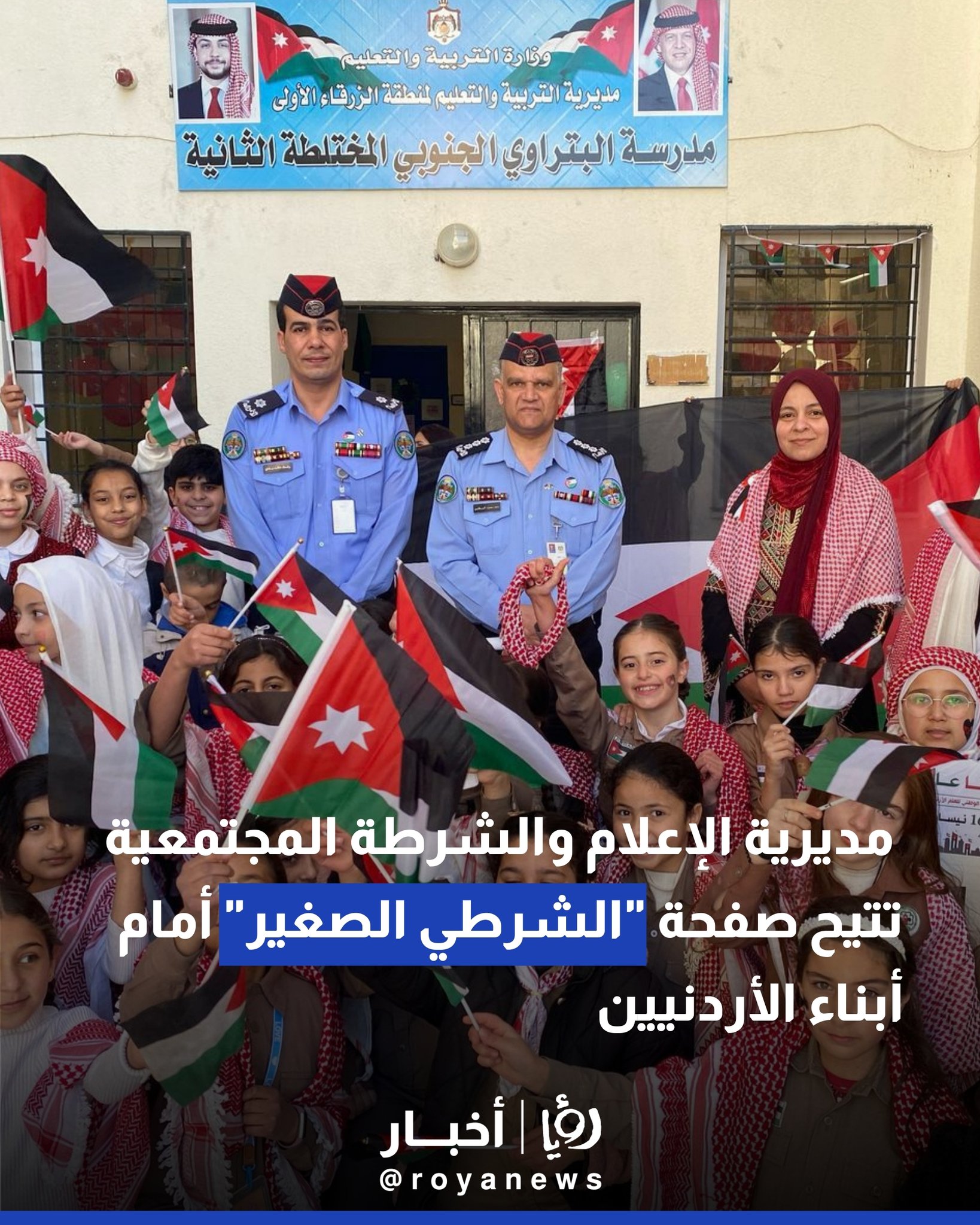 أتاحت مديرية الاعلام والشرطة المجتمعية اليوم الأربعاء صفحة الشرطي الصغير أمام أبناء الاردنيين من الفئات العمرية ( الاطفال ) بنشر الفيديوهات والصور مع علم الوطن.