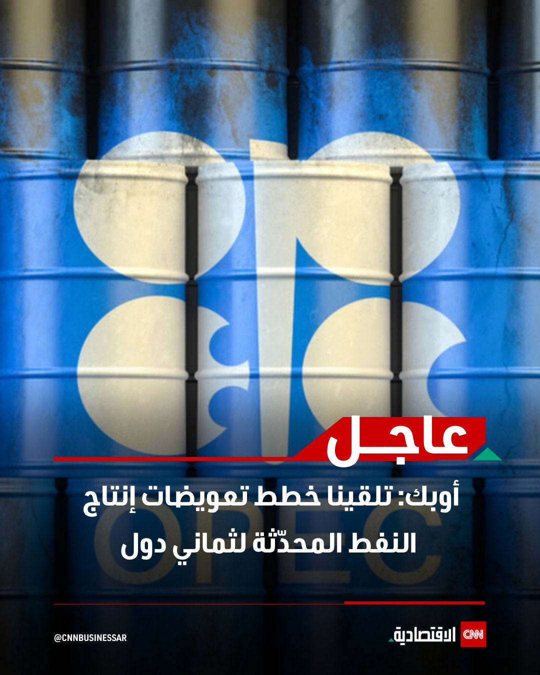 عاجل | أوبك: تلقينا خطط تعويضات إنتاج النفط المحدّثة لثماني دول. الدول تتضمن المملكة العربية السعودية والعراق والإمارات العربية المتحدة والكويت وكازاخستان والجزائر وعمان #العالم_بلغة_الأعمال