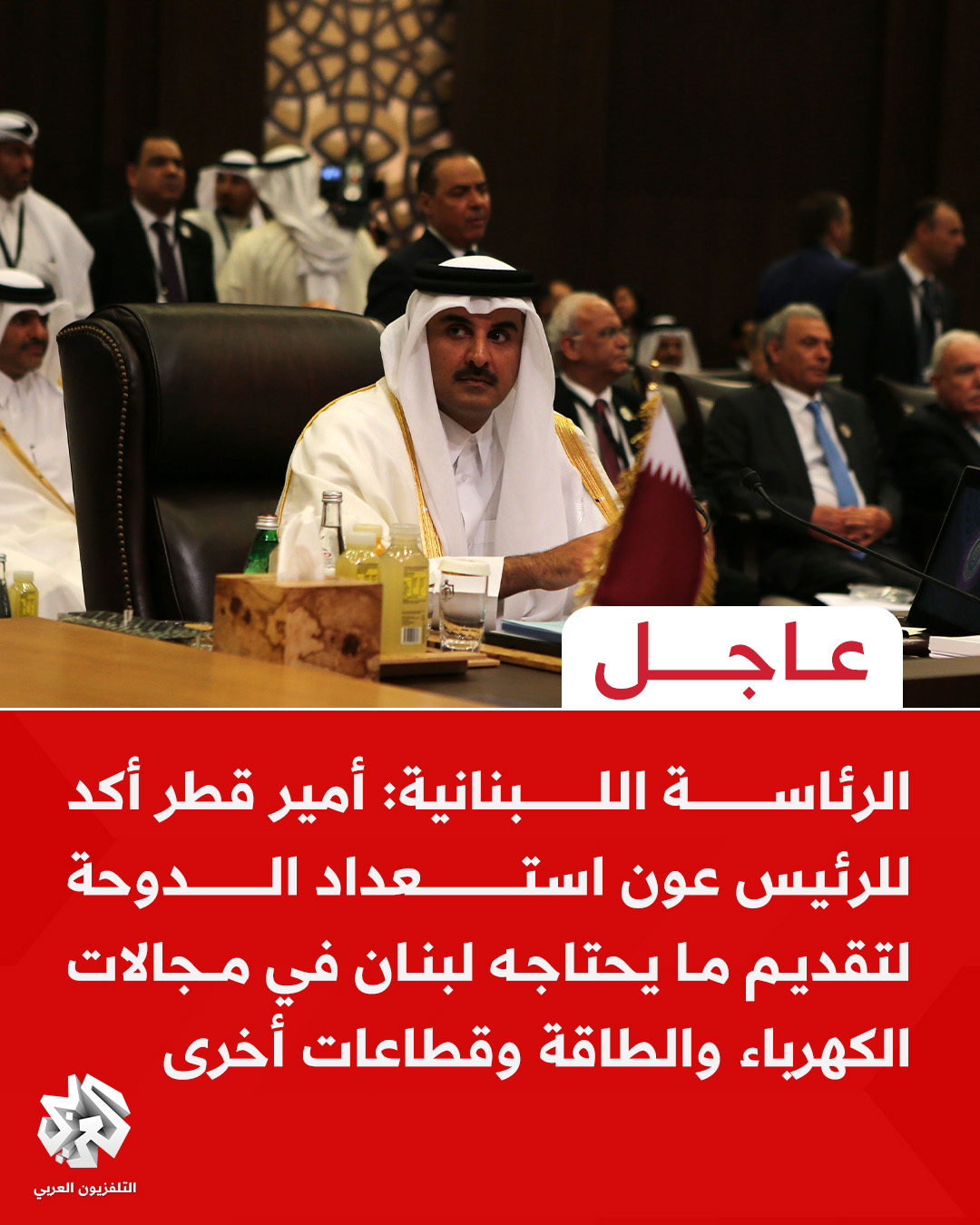 عاجل | الرئاسة اللبنانية: أمير قطر أكد للرئيس عون استعداد الدوحة لتقديم ما يحتاجه لبنان في مجالات الكهرباء والطاقة وقطاعات أخرى. أمير قطر أكد أن زيارة الرئيس عون إلى الدوحة مهمة وتاريخية في سبيل تطوير العلاقات بين البلدين. أمير قطر أكد أن الفرصة متاحة بعد انتخاب الرئيس عون وتشكيل الحكومة لتفعيل الدعم القطري للبنان