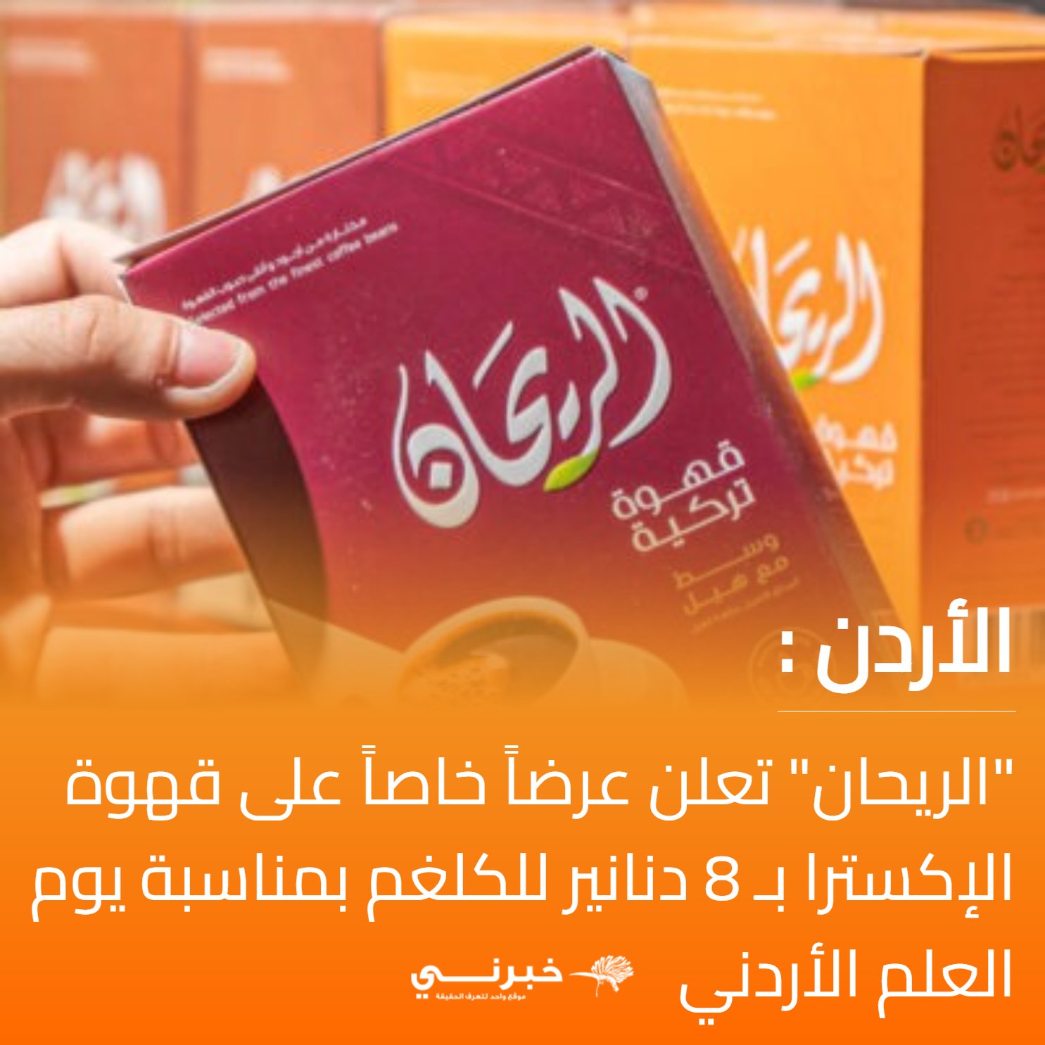 الأردن : "الريحان" تعلن عرضاً خاصاً على قهوة الإكسترا ب 8 دنانير للكلغم بمناسبة يوم العلم الأردني