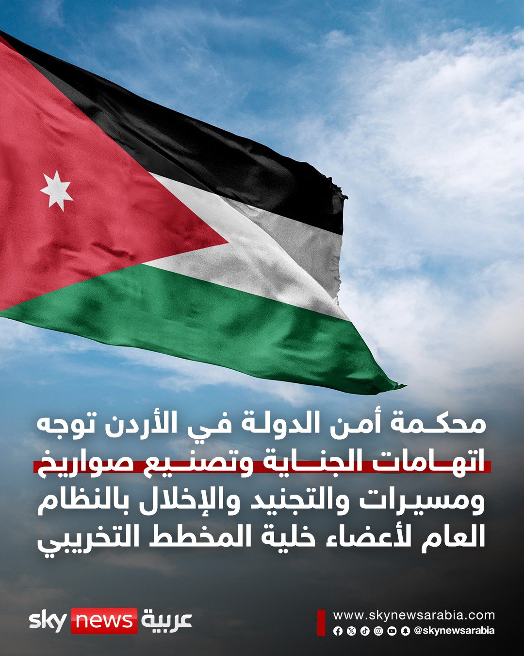 محكمة أمن الدولة في الأردن توجه اتهامات الجناية وتصنيع صواريخ ومسيرات والتجنيد والإخلال بالنظام العام لأعضاء خلية المخطط التخريبي #سوشال_سكاي