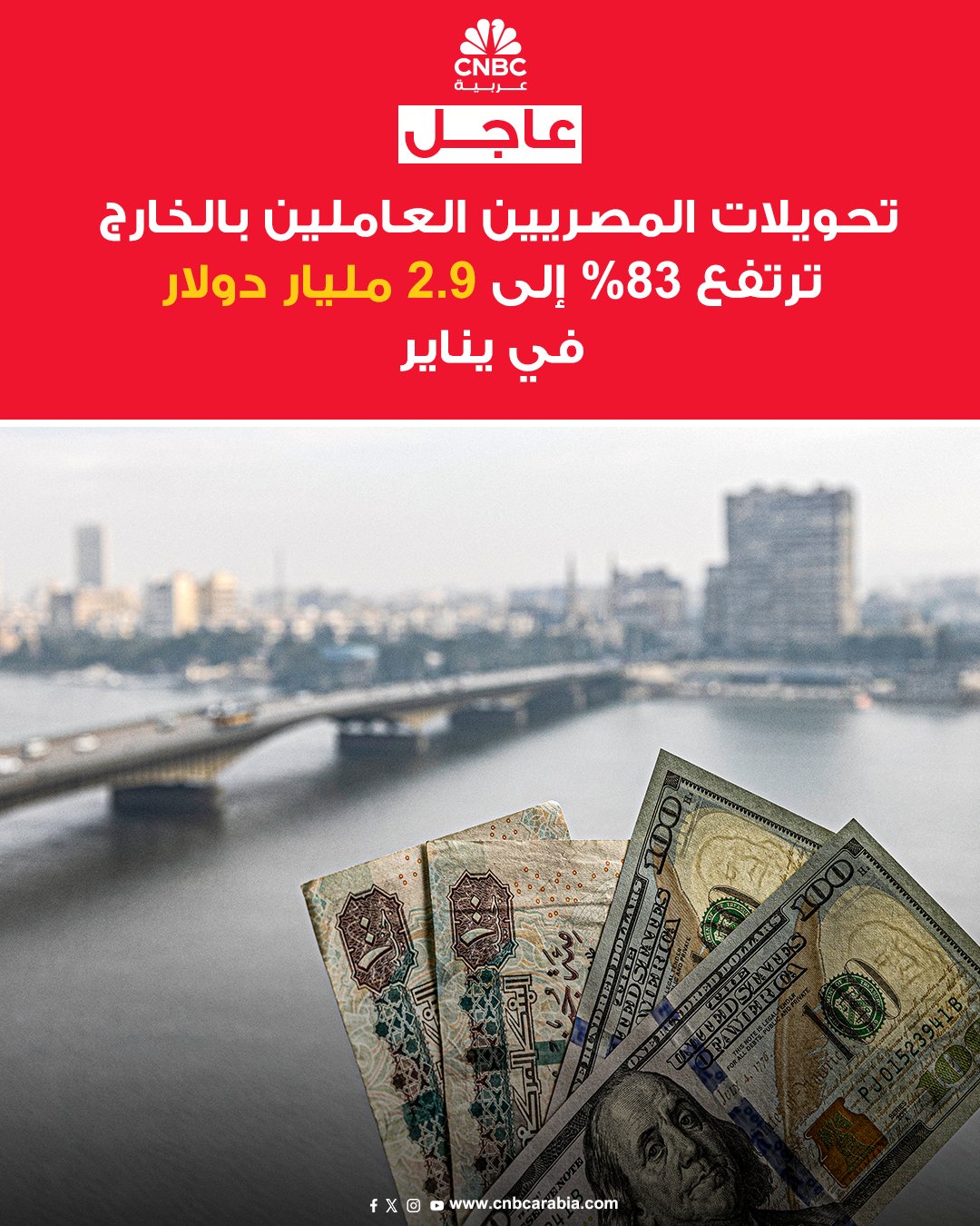 عاجل تحويلات المصريين العاملين بالخارج ترتفع 83% إلى 2.9 مليار دولار في يناير كانون الثاني. التحويلات ترتفع 81% خلال الفترة من يوليو تموز 2024 وحتى يناير كانون الثاني 2025 لتسجل 20 مليار دولار