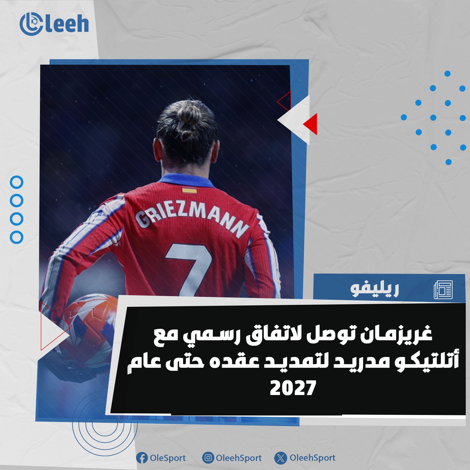 أنطوان غريزمان يجدد الولاء لأتلتيكو مدريد. النجم الفرنسي توصل لاتفاق رسمي مع الروخيبلانكوس لتمديد عقده حتى عام 2027. وفقًا ل