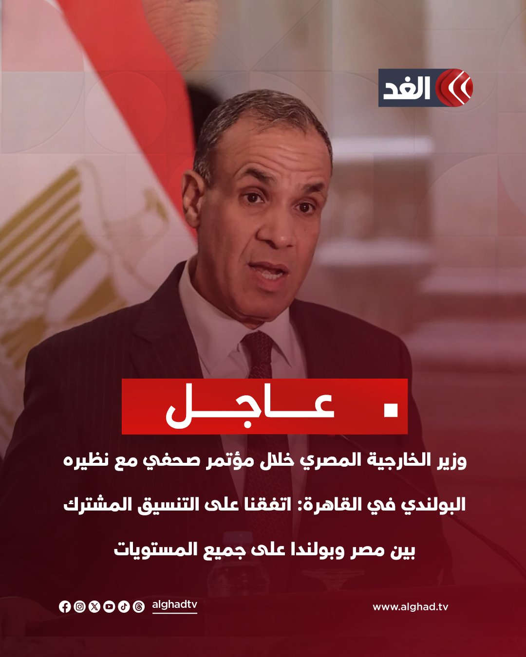 عاجل | وزير الخارجية المصري خلال مؤتمر صحفي مع نظيره البولندي في القاهرة: اتفقنا على التنسيق المشترك بين مصر و بولندا على جميع المستويات. وزير خارجية بولندا: بحثنا الوضع المتفاقم في غزة والبحر الأحمر وكلها قضايا تؤثر في أمن المنطقة