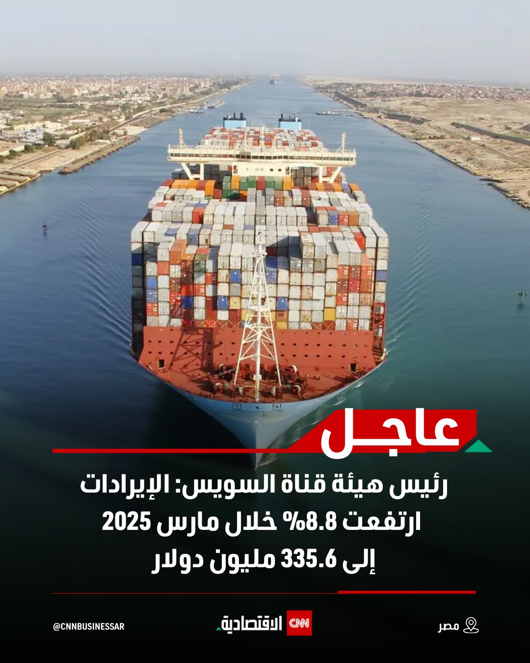 عاجل | رئيس هيئة قناة السويس: الإيرادات ارتفعت 8.8% خلال مارس 2025 إلى 335.6 مليون دولار #العالم_بلغة_الأعمال