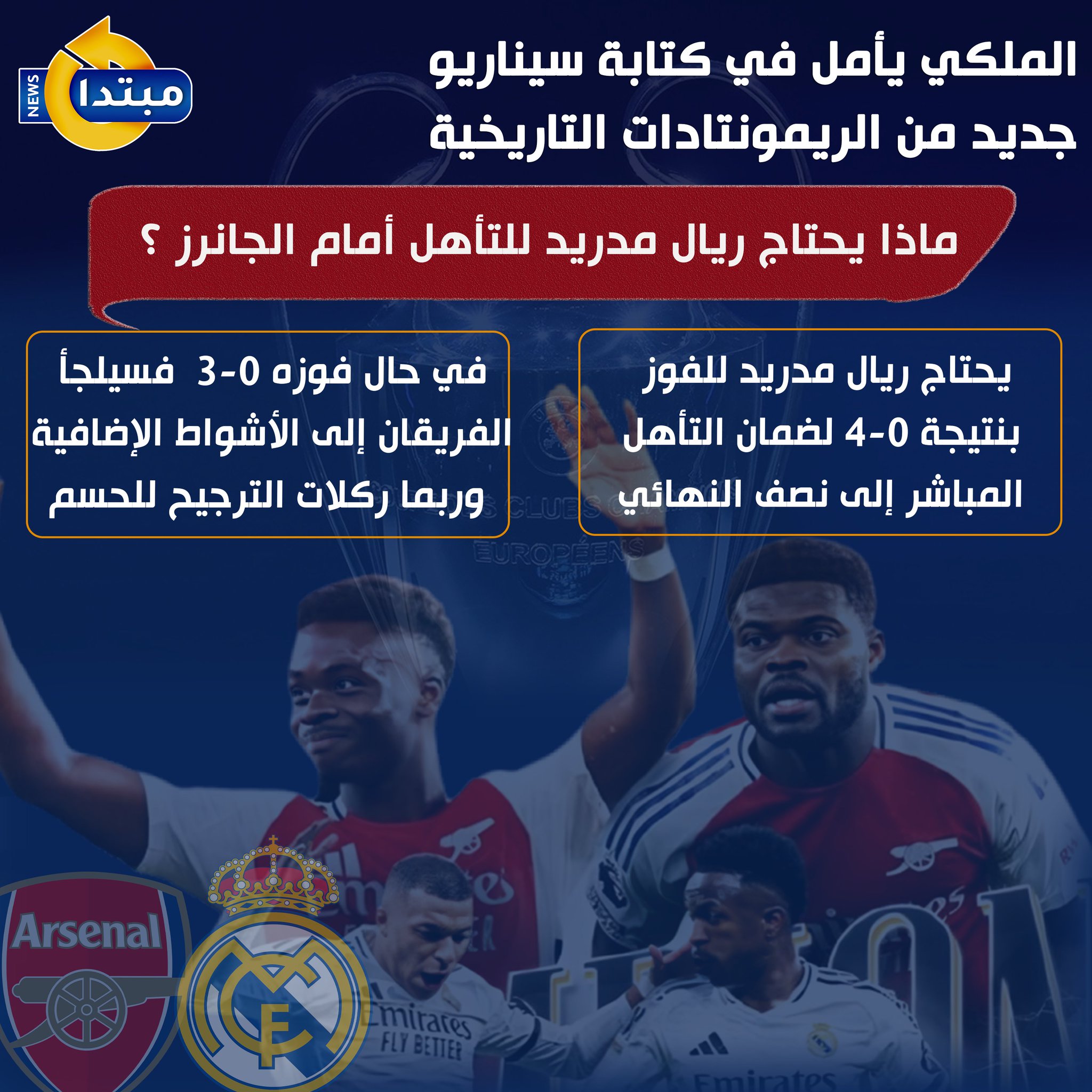 ريمونتادا منتظرة.. ماذا يحتاج ريال مدريد لحسم التأهل ل نصف نهائي دوري أبطال أوروبا ؟ #ريال_مدريد_ارسنال
