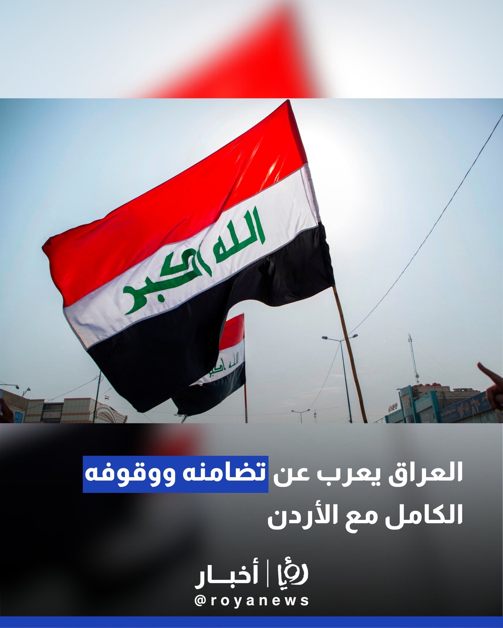 أعربت وزارة الخارجية العراقية عن تضامن جمهورية العراق الكامل مع المملكة الأردنية الهاشمية، مؤكدة الوقوف إلى جانب الاردن في مواجهة أي محاولات تهدف النيل من أمنه واستقراره.