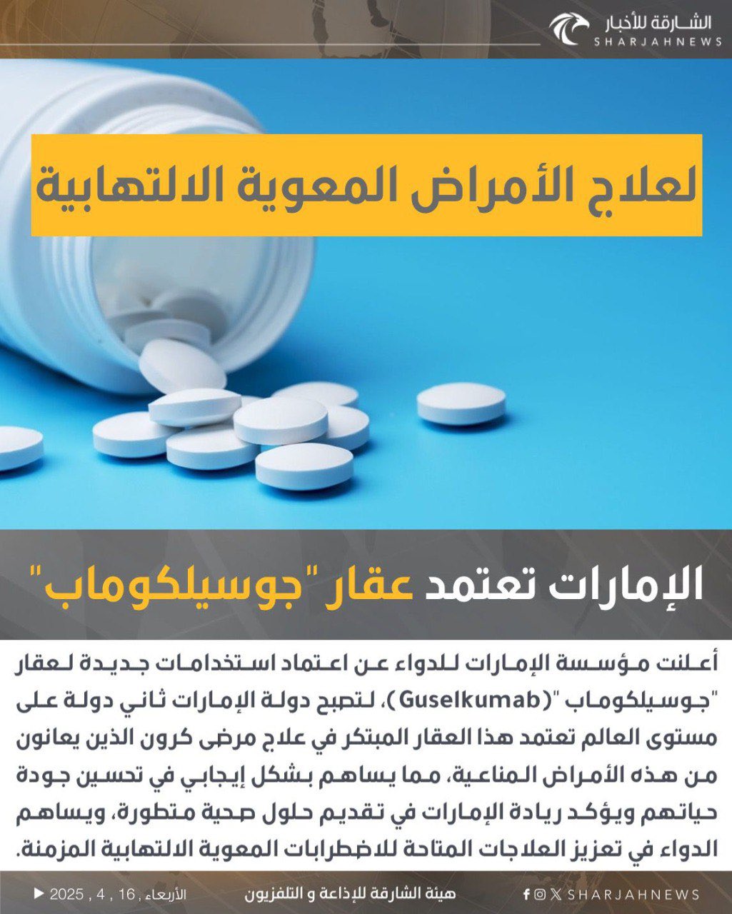 مؤسسة الإمارات للدواء تعتمد عقار "جوسيلكوماب" لعلاج الأمراض المعوية الالتهابية.