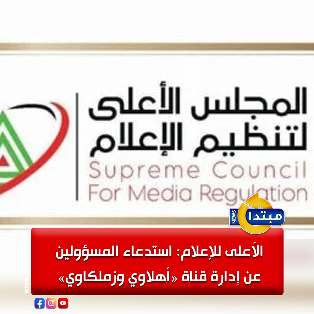 الأعلى للإعلام: استدعاء المسؤولين عن إدارة قناة «أهلاوي وزملكاوي» على اليوتيوب بناءً على ما أسفرت عنه أعمال الإدارة العامة للرصد من مخالفات للضوابط والمعايير الإعلامية والأكواد الصادرة عن المجلس الأعلى لتنظيم الإعلام التى شابت المحتوى المقدَّم من خلال القناة