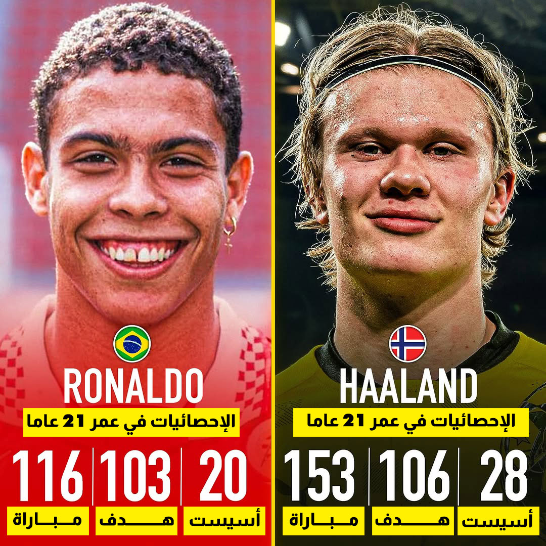إحصائيات رونالدو الظاهرة وهالاند في عمر ال21 عاما
