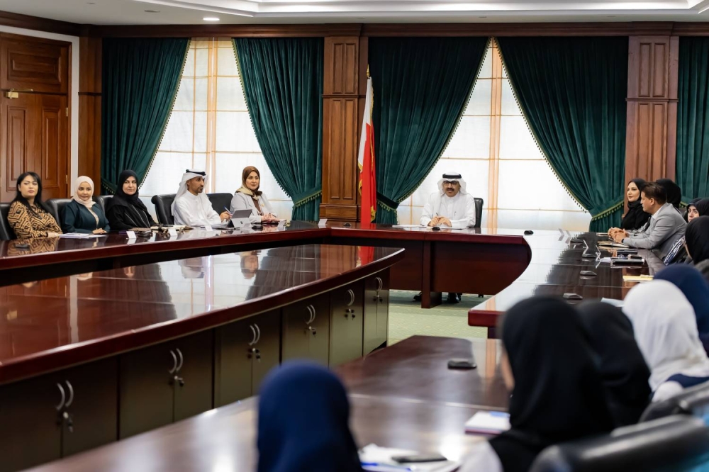 اجتمع الدكتور محمد بن مبارك جمعة وزير التربية والتعليم مع اللجنة الاستشارية الطلابية التي تضمّ 39 طالباً وطالبة يمثّلون جميع المدارس الثانوية الحكومية في مملكة البحرين، وذلك بحضور الأستاذة سهى صالح حمادة المدير العام لشئون المدارس، وعدد من المسؤولين.