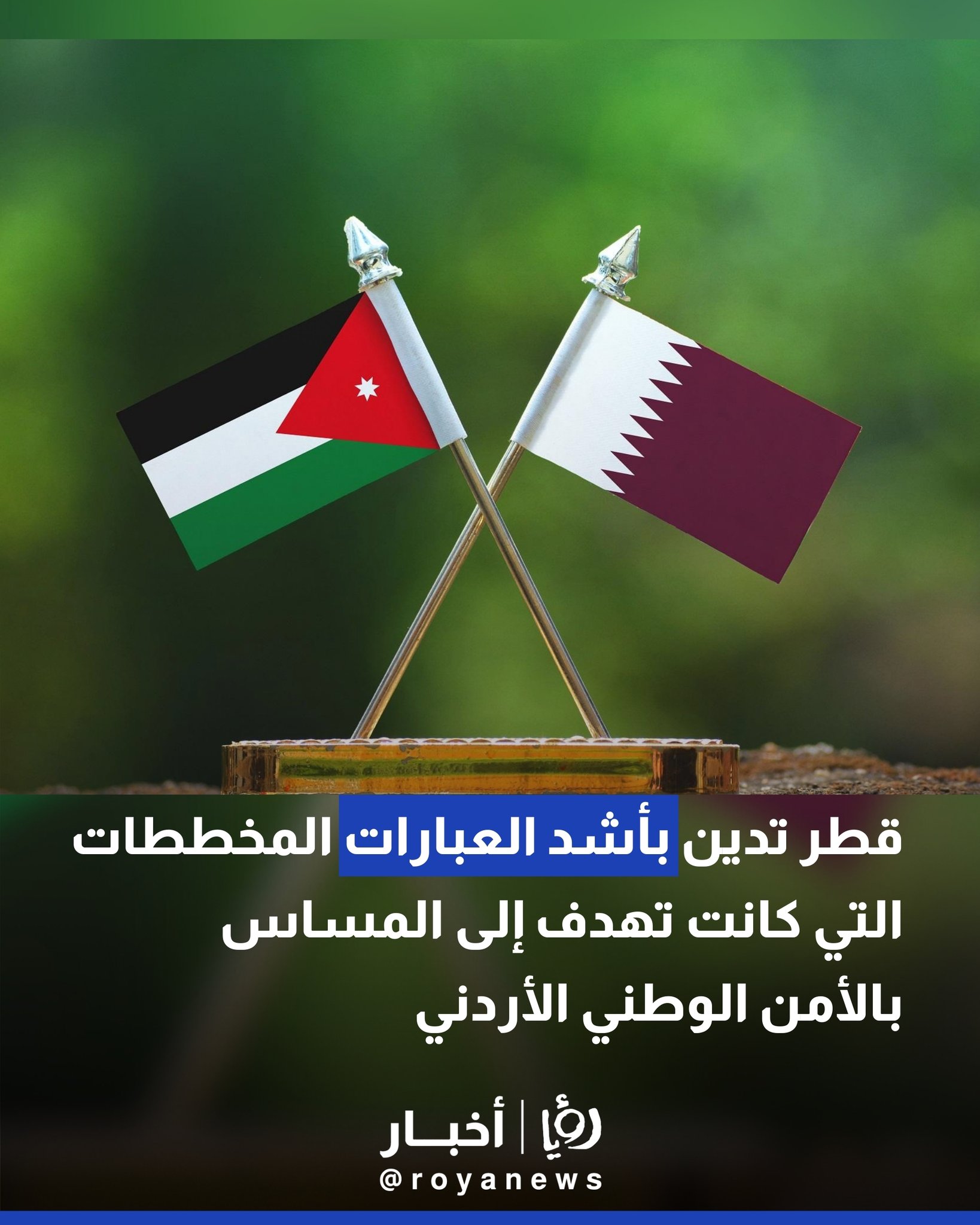 أدانت دولة قطر اليوم الأربعاء بأشد العبارات، المخططات التي كانت تهدف إلى المساس بالأمن الوطني وإثارة الفوضى داخل الأردن.
