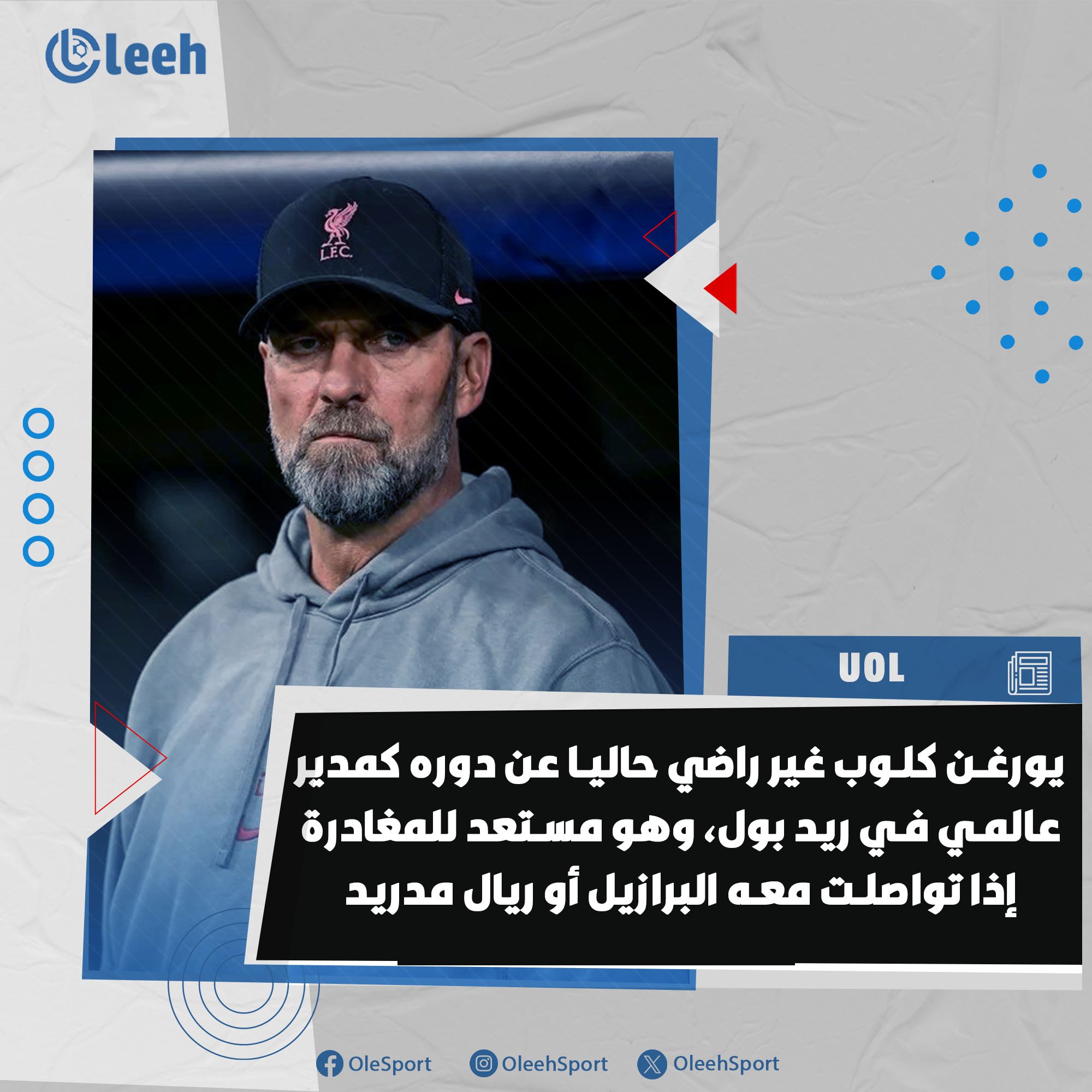 يورغن كلوب غير راضي حاليًا عن دوره كمدير عالمي في ريد بول. وهو مستعد للمغادرة إذا تواصلت معه البرازيل أو ريال مدريد. ومع ذلك، لم يتواصل الاتحاد البرازيلي لكرة القدم (CBF) معه حتى الآن. وفقًا ل