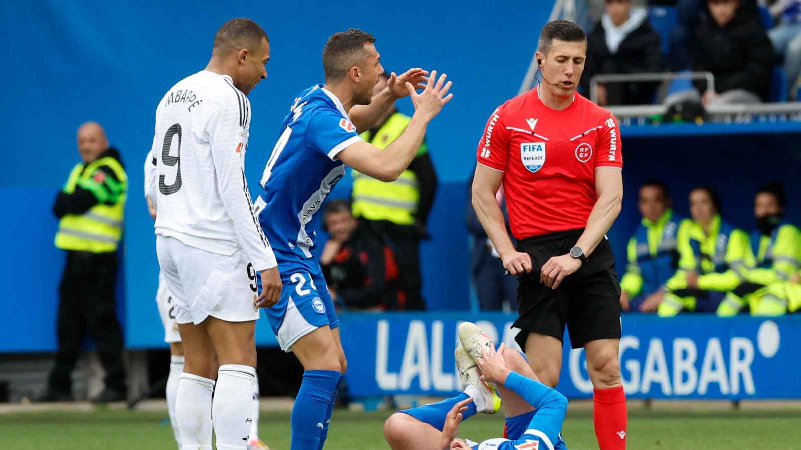 وتدخل مبابي، هداف الريال بطريقة عنيفة على لاعب ديبورتيفو ألافيس ليشهر الحكم في وجهه أول بطاقة حمراء هذا الموسم، بعد مراجعة تقنية حكم الفيديو المساعد (الفار).