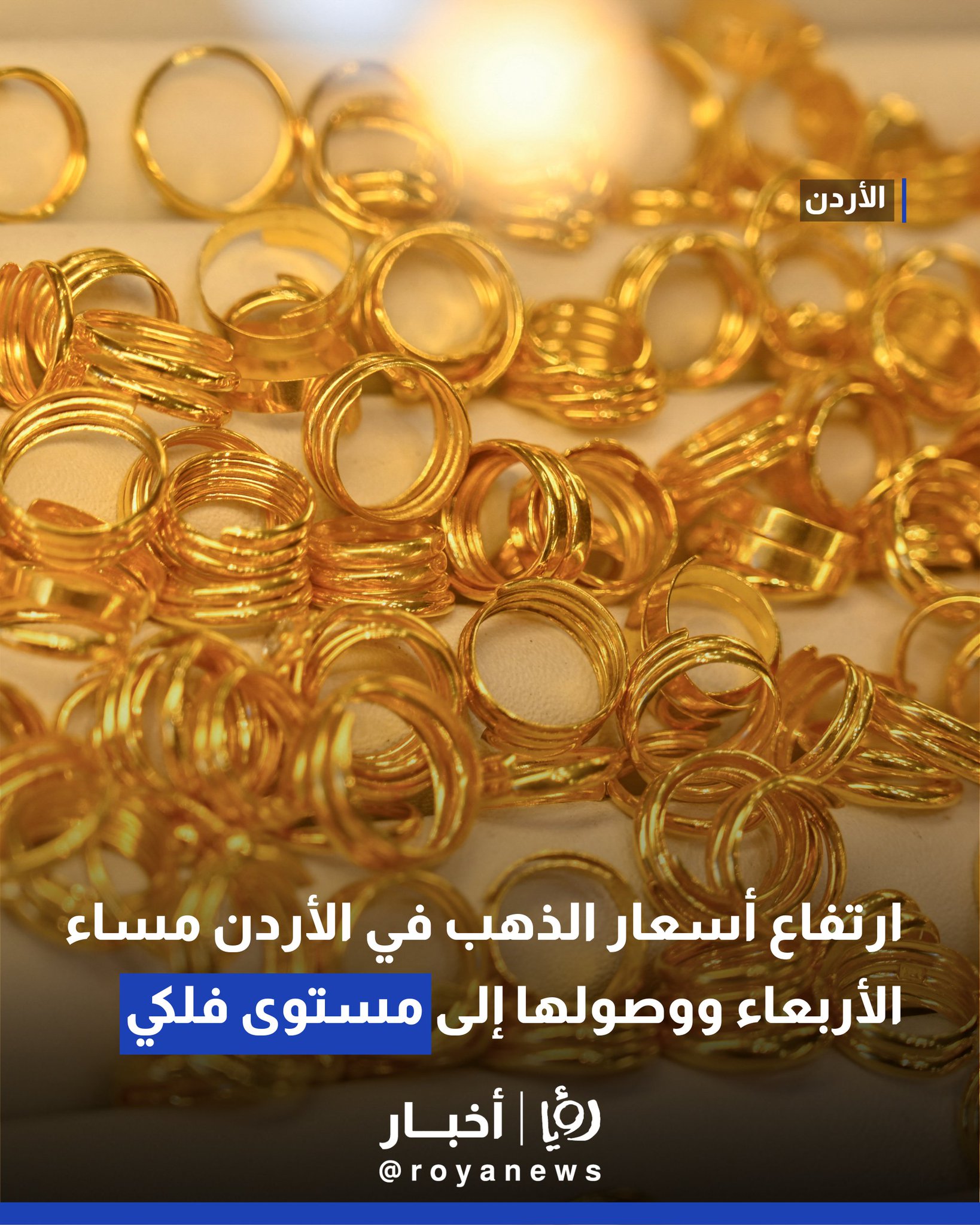 ارتفعت أسعار الذهب في الأردن مساء الأربعاء، نحو 60 قرشا، وفقا لنقابة تجار الحلي والمجوهرات.