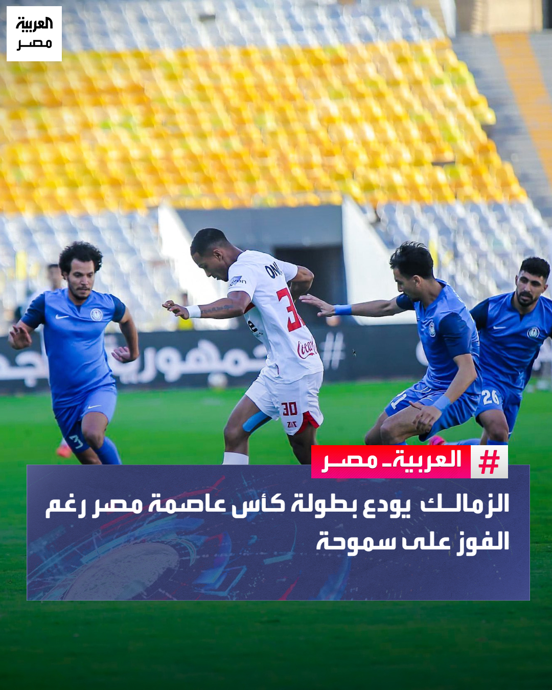 الزمالك يودع بطولة كأس عاصمة مصر رغم الفوز على سموحة _مصر ودع فريق الزمالك بطولة كأس عاصمة مصر رغم الفوز على سموحة بهدف دون رد في ضمن منافسات الجولة الأخيرة، بعدما جمع 5 نقاط من 4 مباريات.. فيما حجز فريقا بتروجت صاحب المركز الأول ومودرن سبورت صاحب المركز الثاني الصعود بخمس نقاط، وبفرق هدف وحيد عن الزمالك