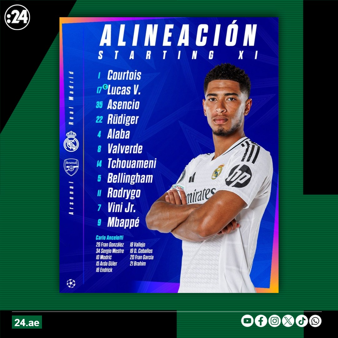 تشكيل ريال مدريد لمواجهة آرسنال في إياب ربع نهائي #دوري_أبطال_أوروبا